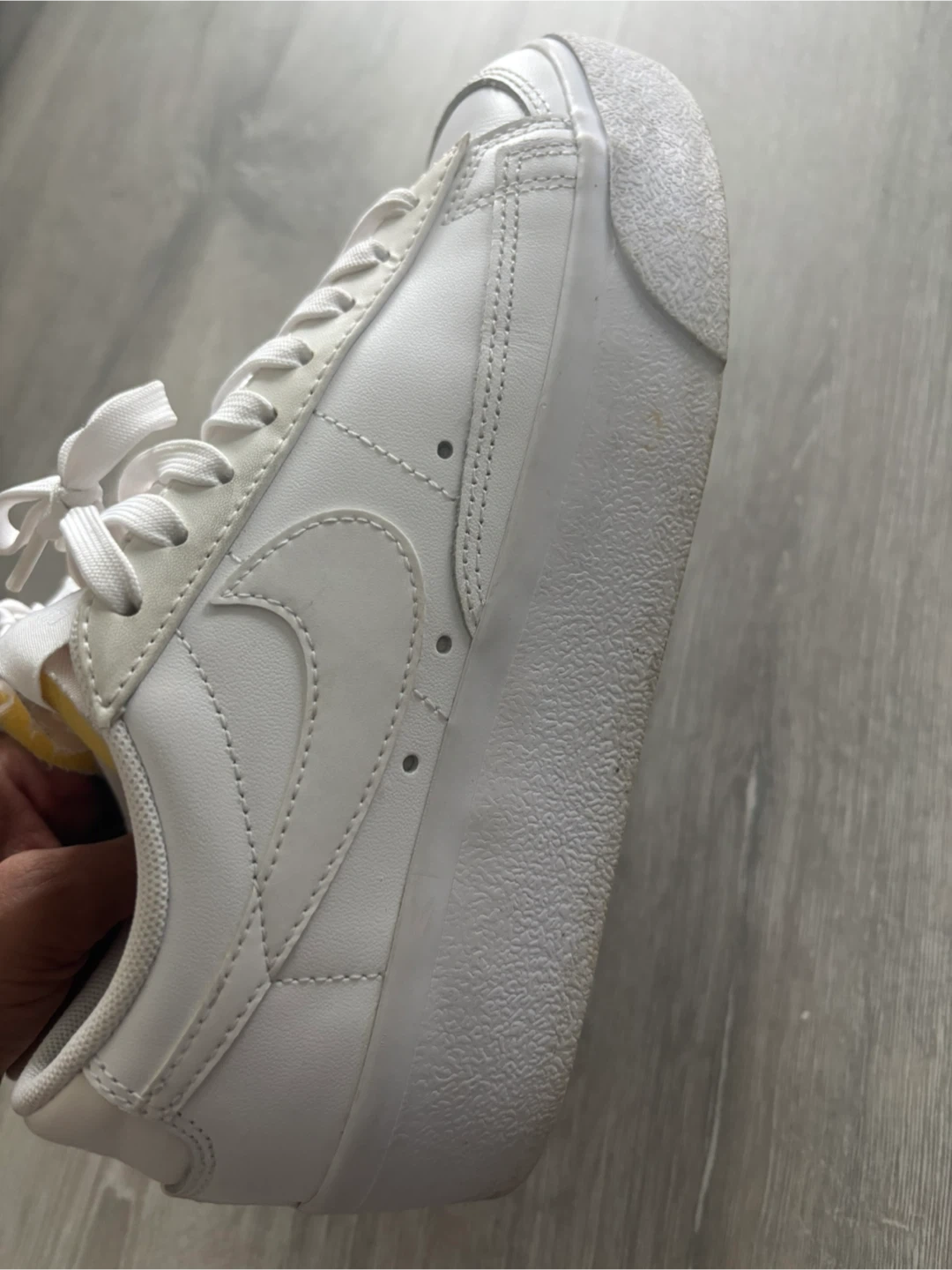 White leather Nike Blazer Low sneakers. EUR 37.5, UK 4, CM 23.5. Made in Indonesia. Manufactured 09/11/21. These are great for everyday wear!