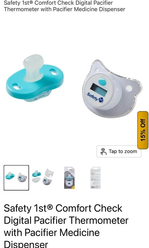 Buy & SellSafety 1st Comfort Check Digital Pacifier ThermometerSafety 1st Comfort Check Digital Pacifier Thermometer$10New Safety 1st® Comfort Check Digital Pacifier Thermometer with Pacifier Medicine Dispenser. $10. X-posted. Pick up near Coxwell and Danforth.WHERE TO MEETCheck LocationView MapSELLERverifiedBellaWoodbine Corridor67869 reviews0 chats·1 favorites·7 viewsSEND CHAT TO SELLERHi Bella! I’m interested in your listing.Hi Bella! I’m interested in your listing.Get the Karrot app to chatSign In to chat