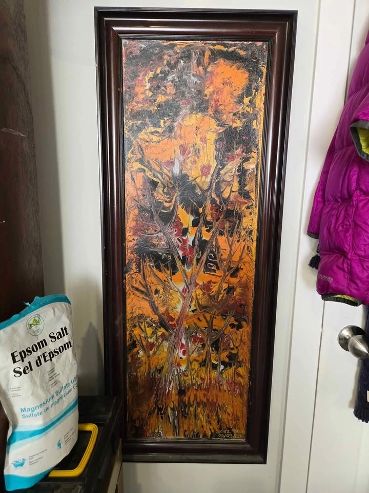 #forestart #abstractforest #upcycledart #acrylicpainting #autumnart #fireart #spiritualart #originalpaintingforsale