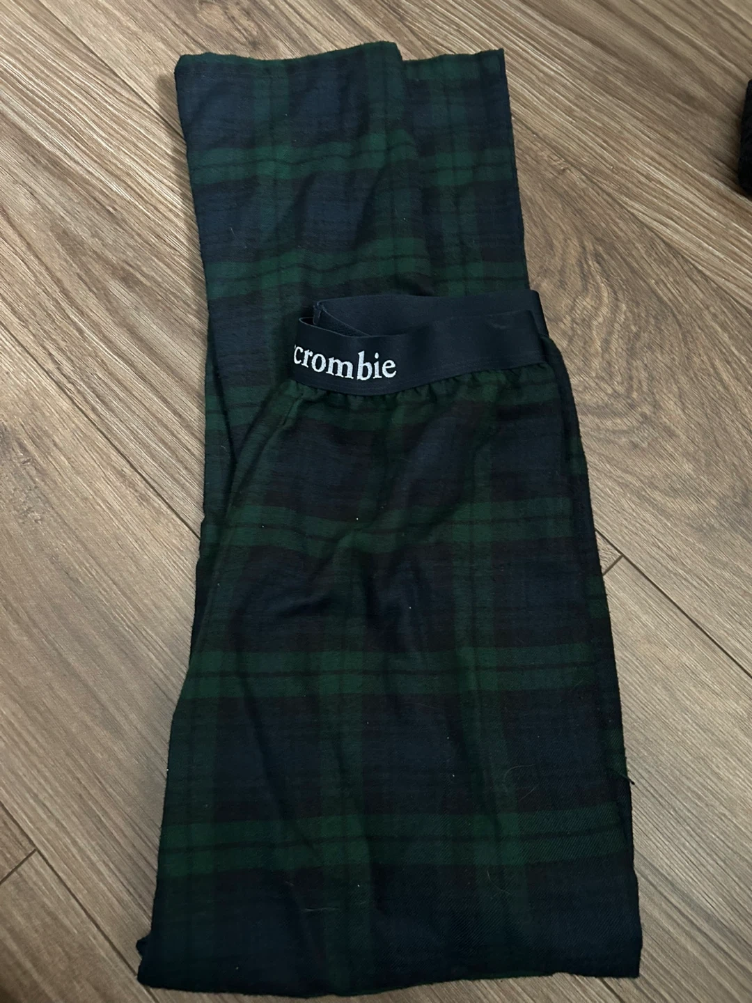Boy size 15/16 These are Abercrombie flannel pajama pants in a green and navy plaid. They feature a comfortable elastic waistband with the brand name printed on it. Soft and cozy for lounging!