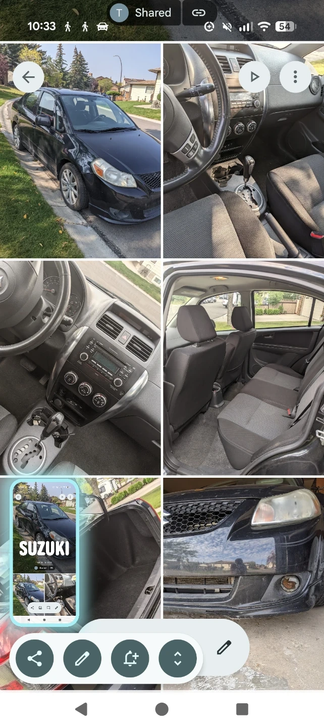 Selling a black Suzuki SX4. This vehicle has cloth interior and an automatic transmission. Ex-large trunk space. Heated seats. Cruise. Excellent stereo. Next to new Winter tires. It's a smooth ride, reliable car for daily commuting. Great for city driving!