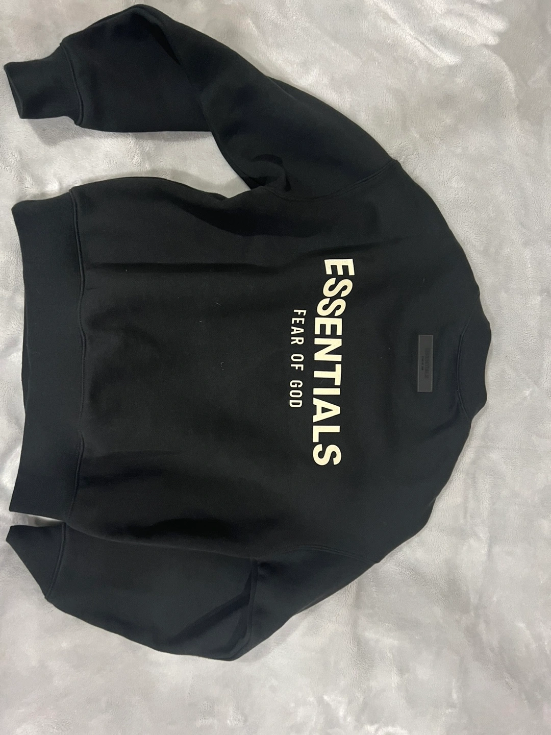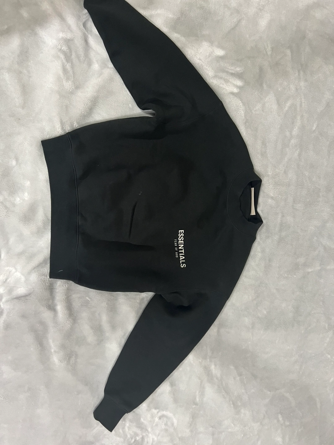Black Fear of God Essentials crewneck sweatshirt. Long sleeves. Minimalist branding. Good condition.