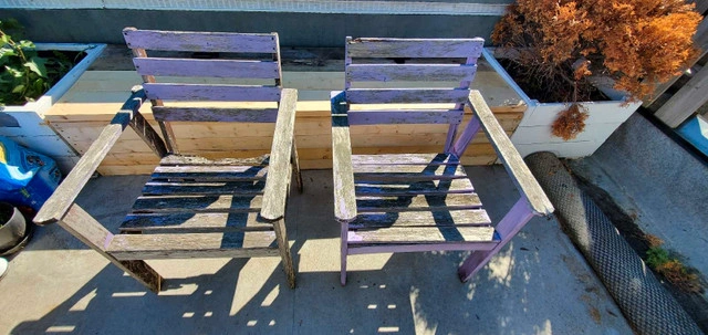 Two deck chairs, have seen better days. 5 dollars each.