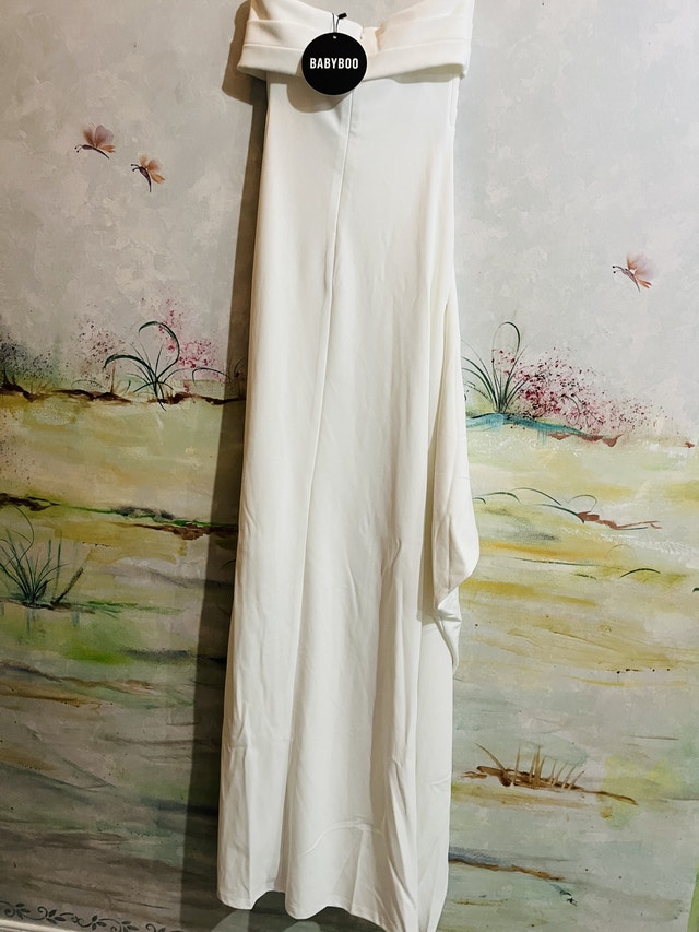 Selling a beautiful, brand new BabyBoo white Maxi dress that features a stunning strapless design and an elegant side slit, perfect for special occasions. Here are some additional details: