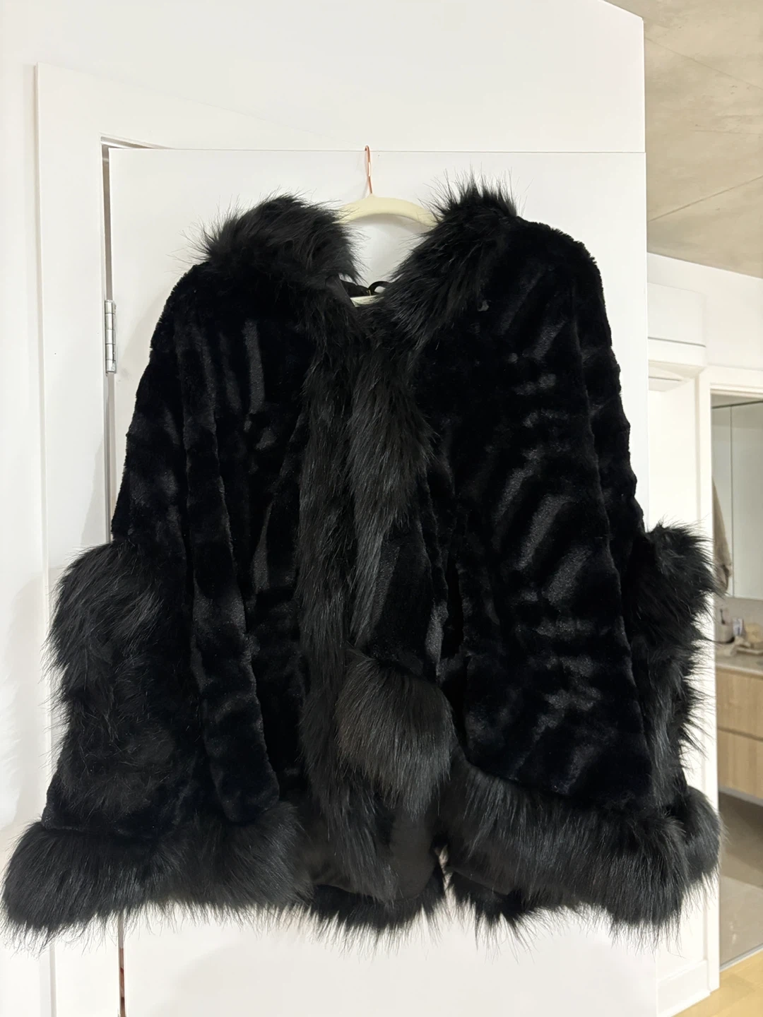 Selling a stylish black faux fur shawl/cape. It's in great condition and perfect for adding a touch of elegance to any outfit! The faux fur is soft and the cape is very warm. It would be a great addition to your wardrobe for fall or winter.