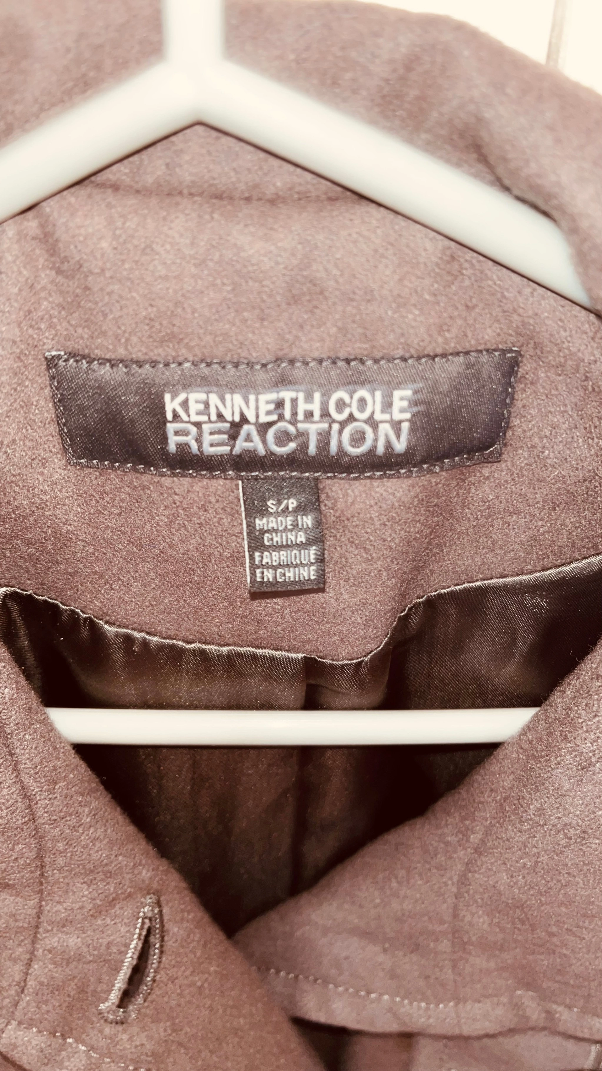 Classic brown coat by Kenneth Cole Reaction, size Small.