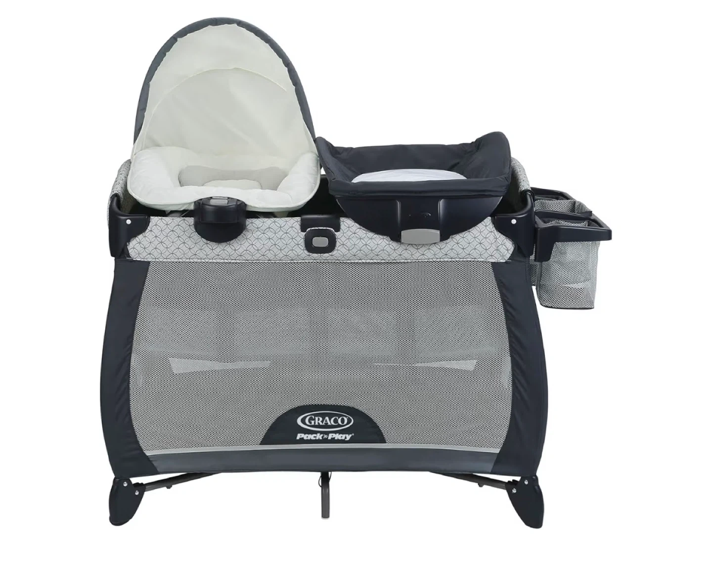 This Graco Pack 'n Play comes with a portable lounger and changing table. It's designed for your baby's comfort and convenience. The playard features mesh sides for ventilation and side organizers for essentials. Included in purchase the playpen mattress for comfort and sleep.