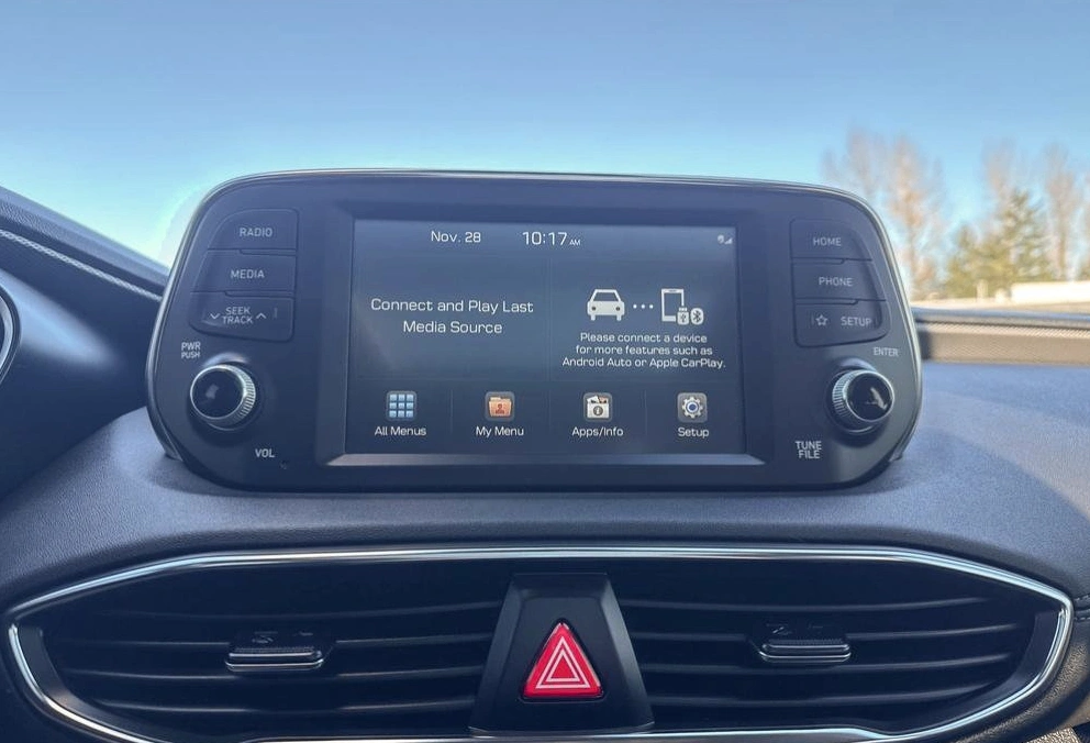 This Hyundai Santa Fe delivers a Regular Unleaded I-4 2.4 L/144 engine powering this Automatic transmission. BLACK, LEATHER SEATING SURFACES, Wireless Phone Connectivity, Wheels: 18 x 7.5J Alloy. This Hyundai Santa Fe Comes Equipped with These Options