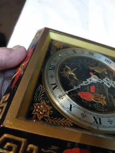Chelsea Hand Painted Asian Enamel Desk Clock ..HOLDS TIME PERFECTLY... has cosmetic wear otherwise works perfectly