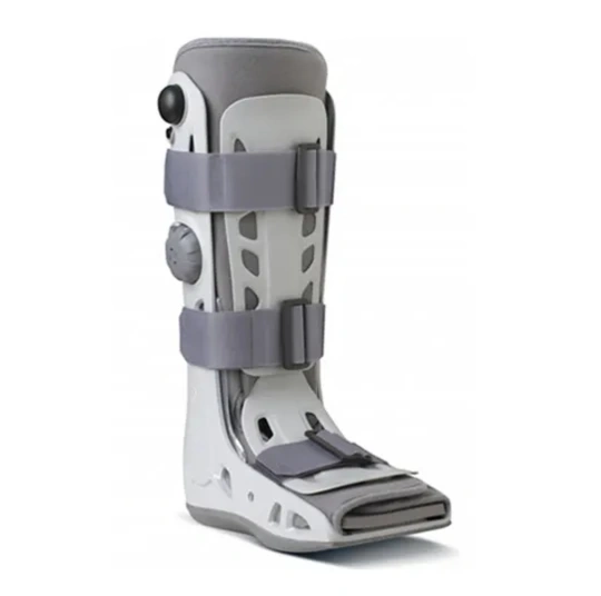 color : Grey, Includes a pump to inflate the boot. No laces. Comes with straps.