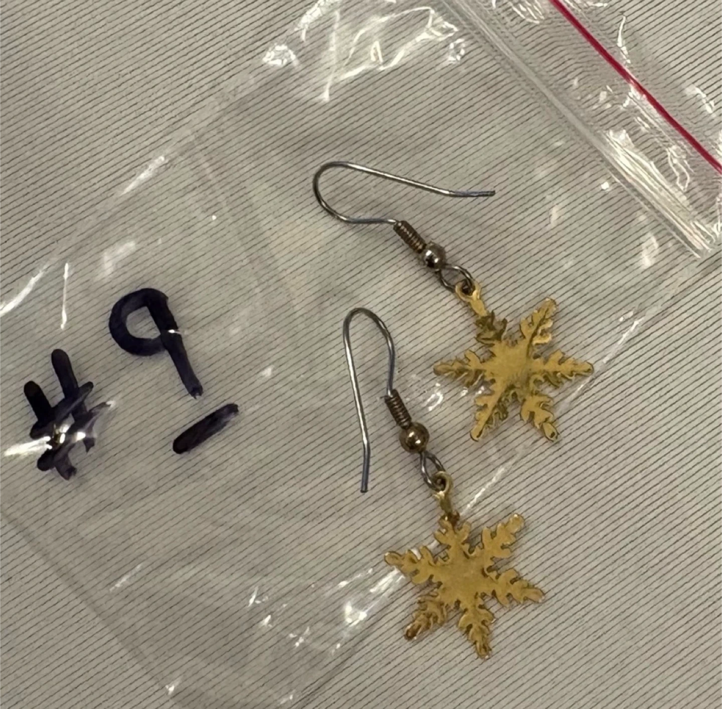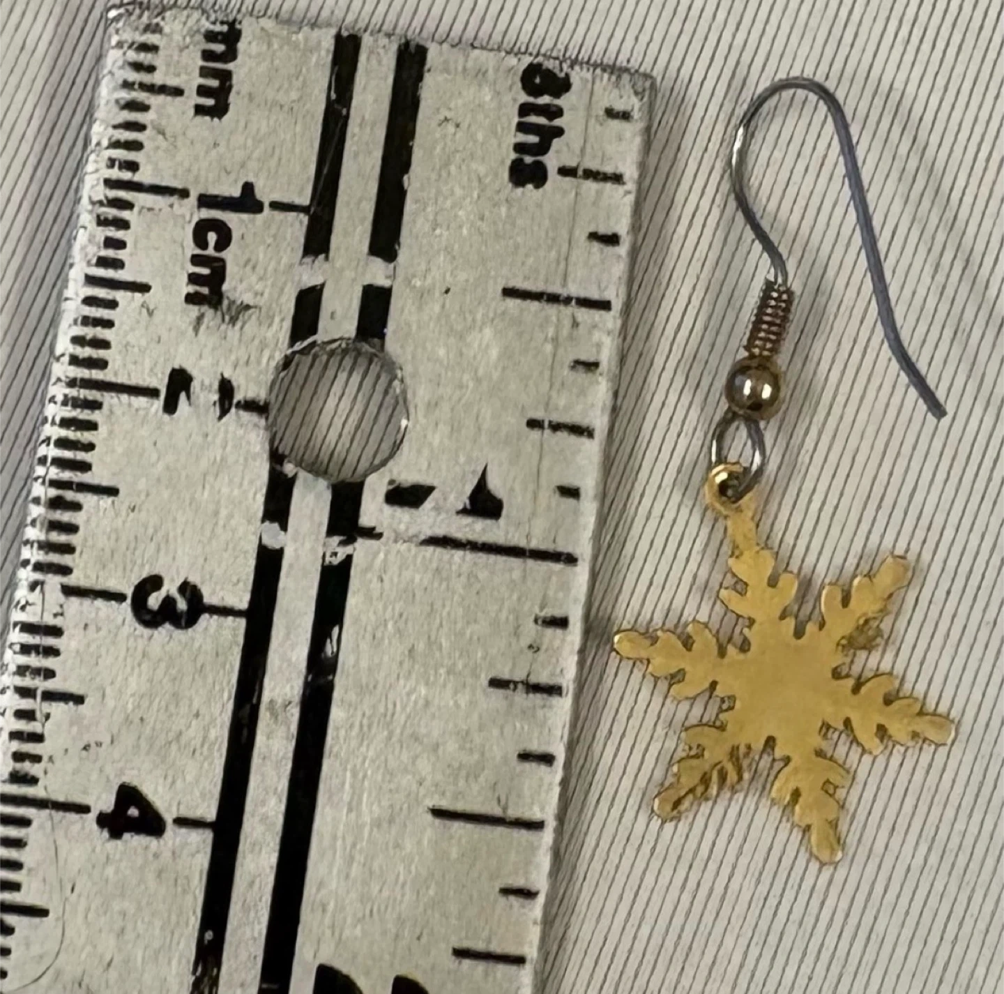Snowflake earrings, gold tone, dangle earrings, winter jewelry, holiday accessories, Christmas, minimalist, delicate, shepherds hook, seasonal