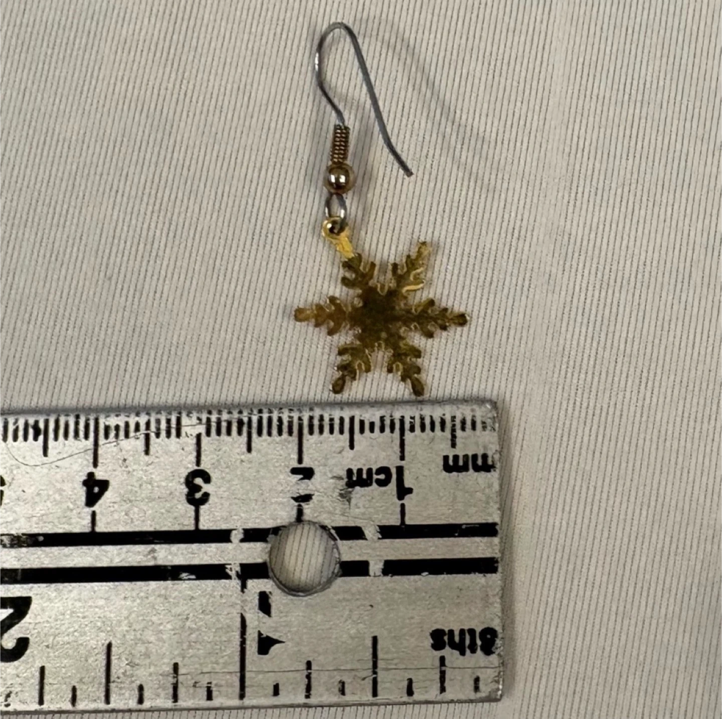 Gold Tone Snowflake Dangle Earrings Winter Holiday Jewelry
