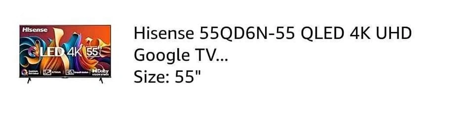 Selling my Hisense 55QD6N-55 QLED 4K UHD Google TV (55 inch) in excellent working condition.