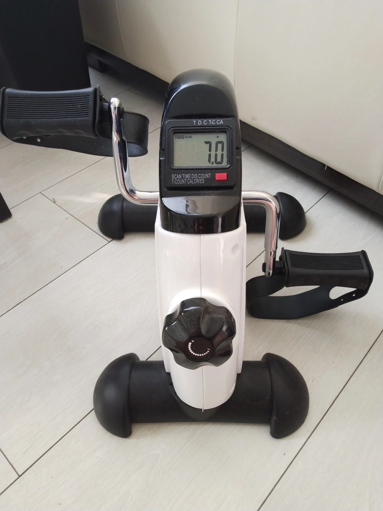 mini exercise bike to be used under the desk , barely used and currently being sold for 80$ + tax on Amazon https://www.amazon.ca/TODO-Exercise-Exerciser-Monitor-Anti-Slip/dp/B06Y4W7NQ1/ref=mp_s_a_1_2_sspa?crid=GDULUG6O1547&keywords=mini+exercise+bike&qid=1698934623&sprefix=mini+exer%2Caps%2C182&sr=8-2-spons&sp_csd=d2lkZ2V0TmFtZT1zcF9waG9uZV9zZWFyY2hfYXRm&psc=1