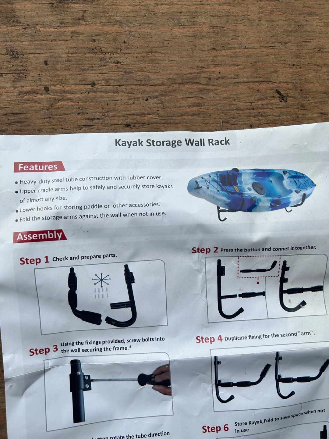 ONE SIDE PIECE:The screw hole is mounted on a straight line.So kayak rack has one side piece which size is 2×3.5cm.Can be fitted on the wall with the minimum width of 2cm.(0.78")