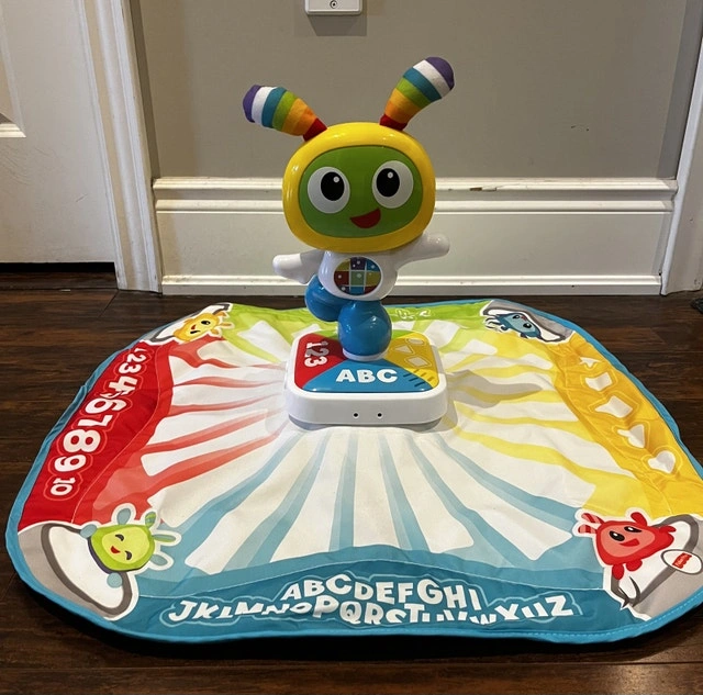 Get your little one moving and grooving with this gently used Fisher-Price Bright Beats Dance and Move BeatBo! This interactive mat features lights, music, and phrases to encourage your child's gross motor skills. It's in great condition and ready for a new home where it can spark joy and movement. Key features: * Interactive dance mat with lights, music, and phrases * Encourages gross motor skills development * Suitable for ages 9-36 months. Cash accepted.