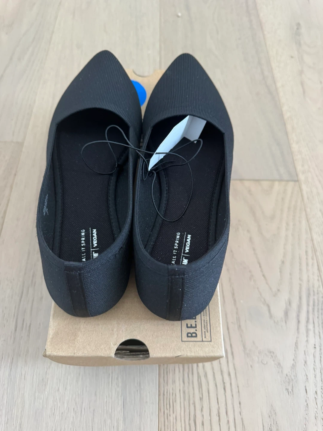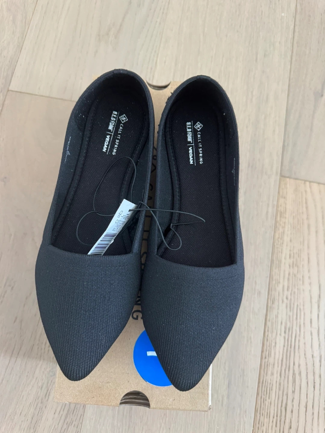 These Call It Spring loafers are black and made with vegan materials. They feature a pointed toe and come with their original box. Size is 7.