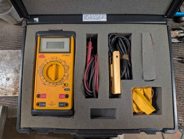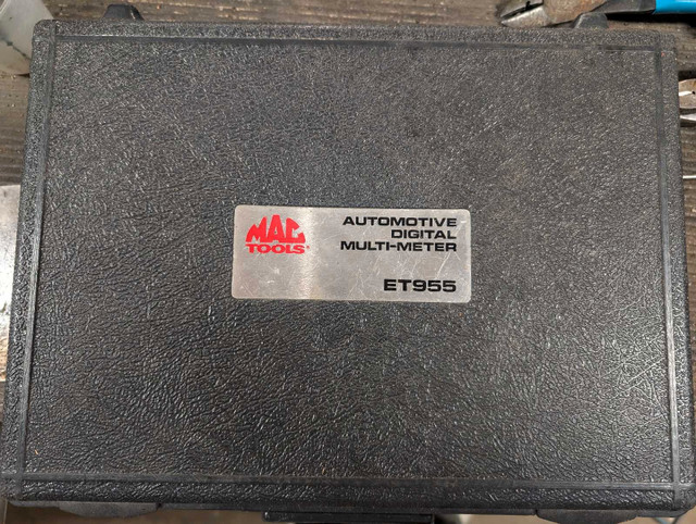 Here's a MAC Tools ET955 Automotive Digital Multi-Meter, in used condition, for all your electrical testing needs. It comes complete with its case and accessories. I've priced it to sell based on its condition and similar listings. * Brand: MAC Tools * Model: ET955 * Type: Automotive Digital Multi-Meter * Condition: Used Don't miss out on this handy tool! If the ad's up, it's still up for grabs! Call, text, make an offer 705-440-9195