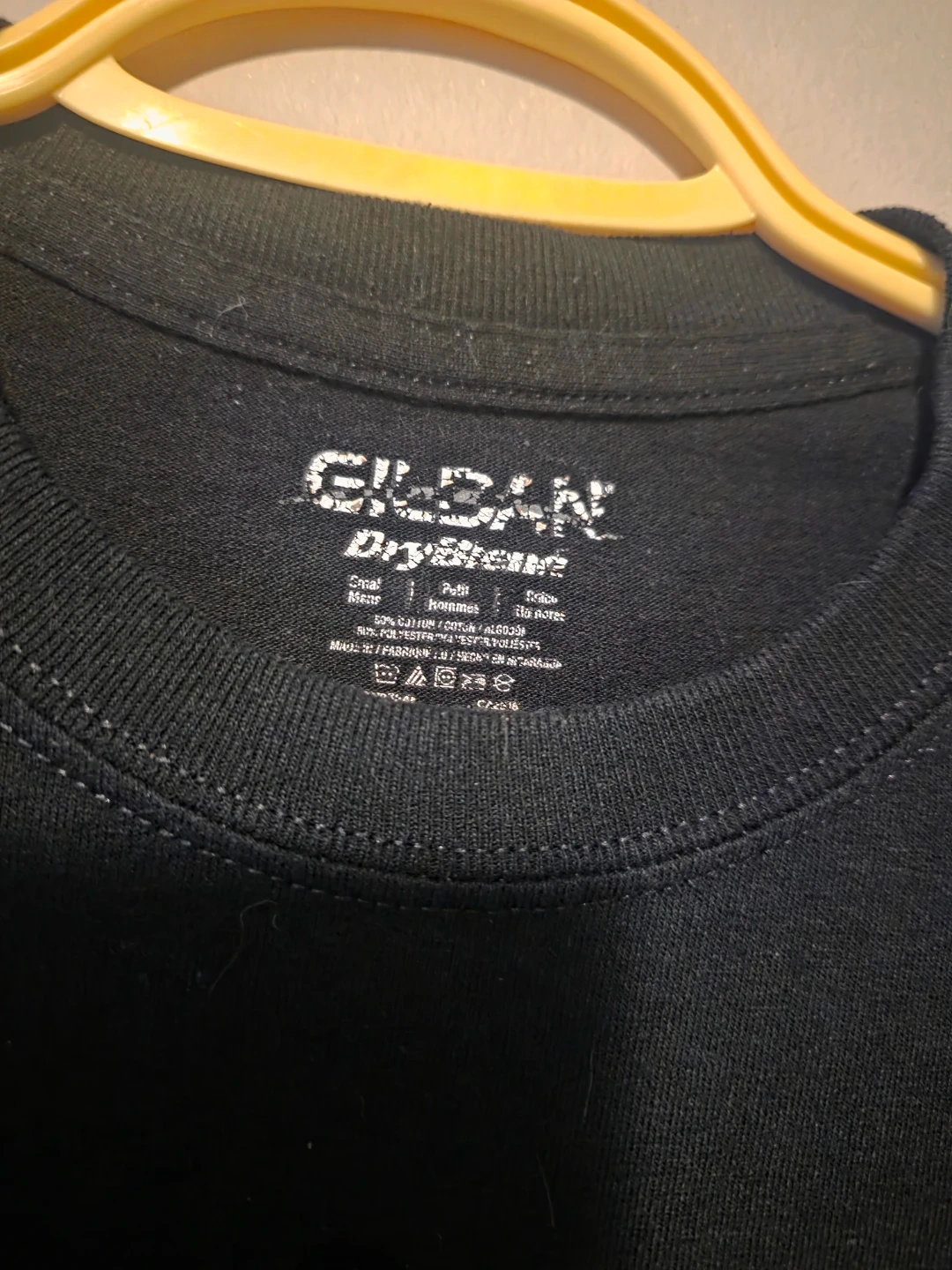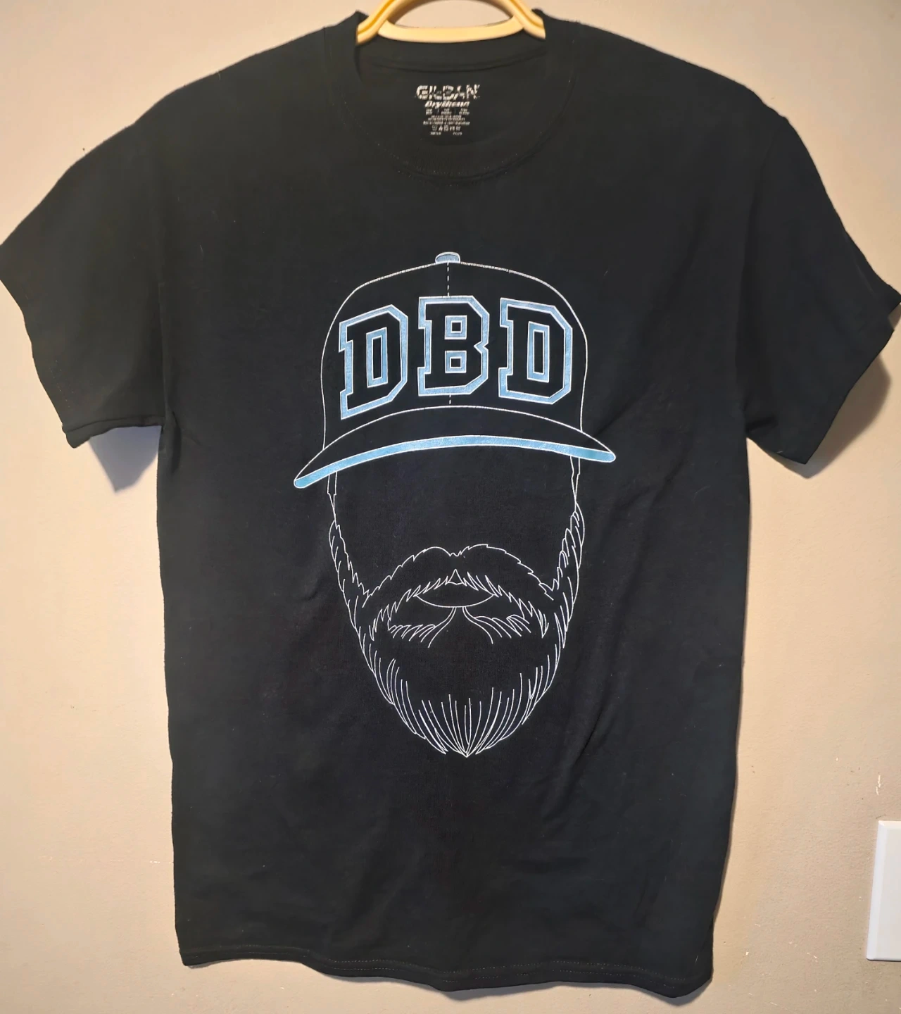 Black Gildan DryBlend t-shirt with battle rapper Dirtbag Dan's "DBD" graphic on the front and "Battle Born Clothing" on the back. It's a size Small. Made from a cotton-polyester blend.
