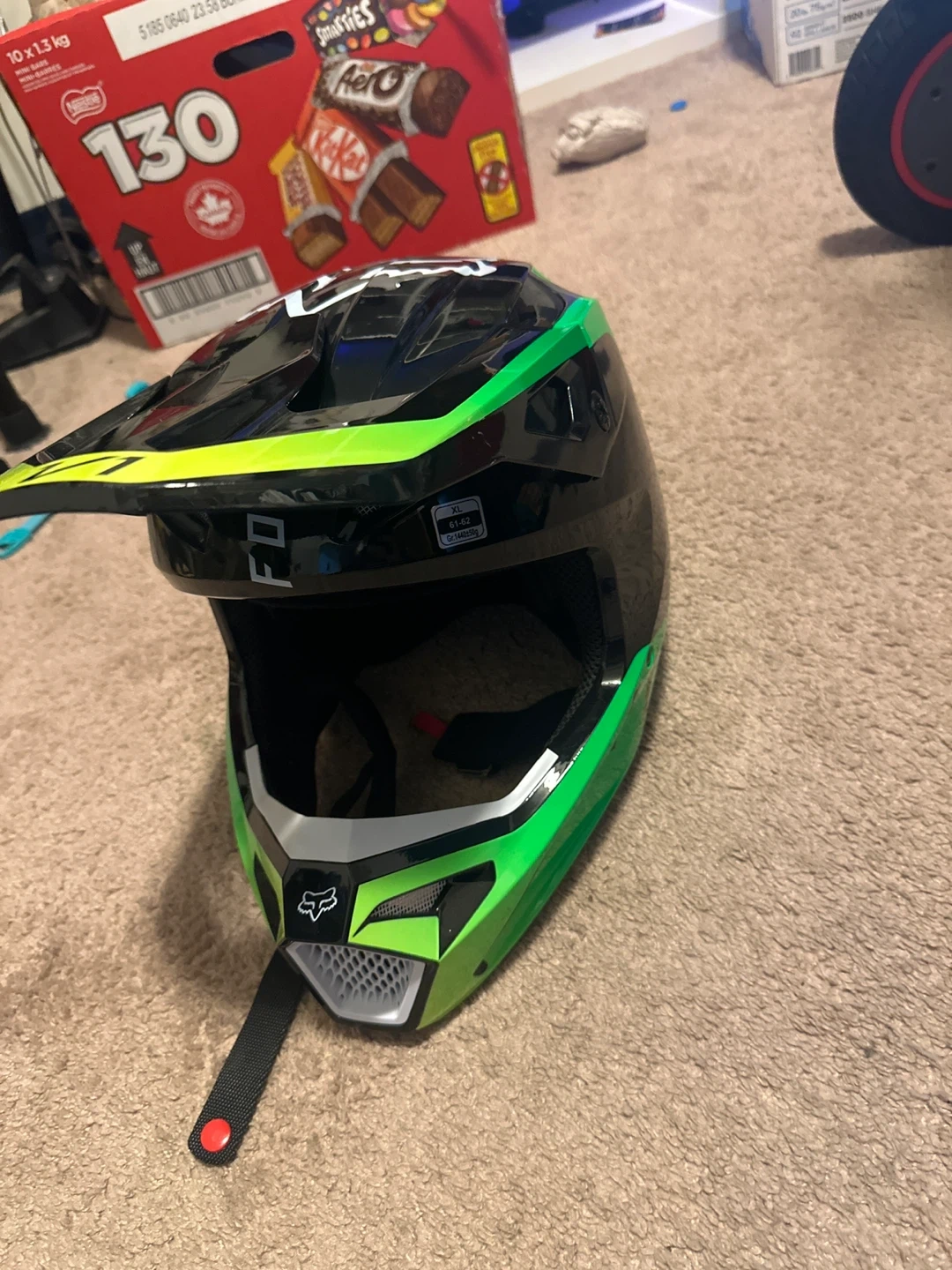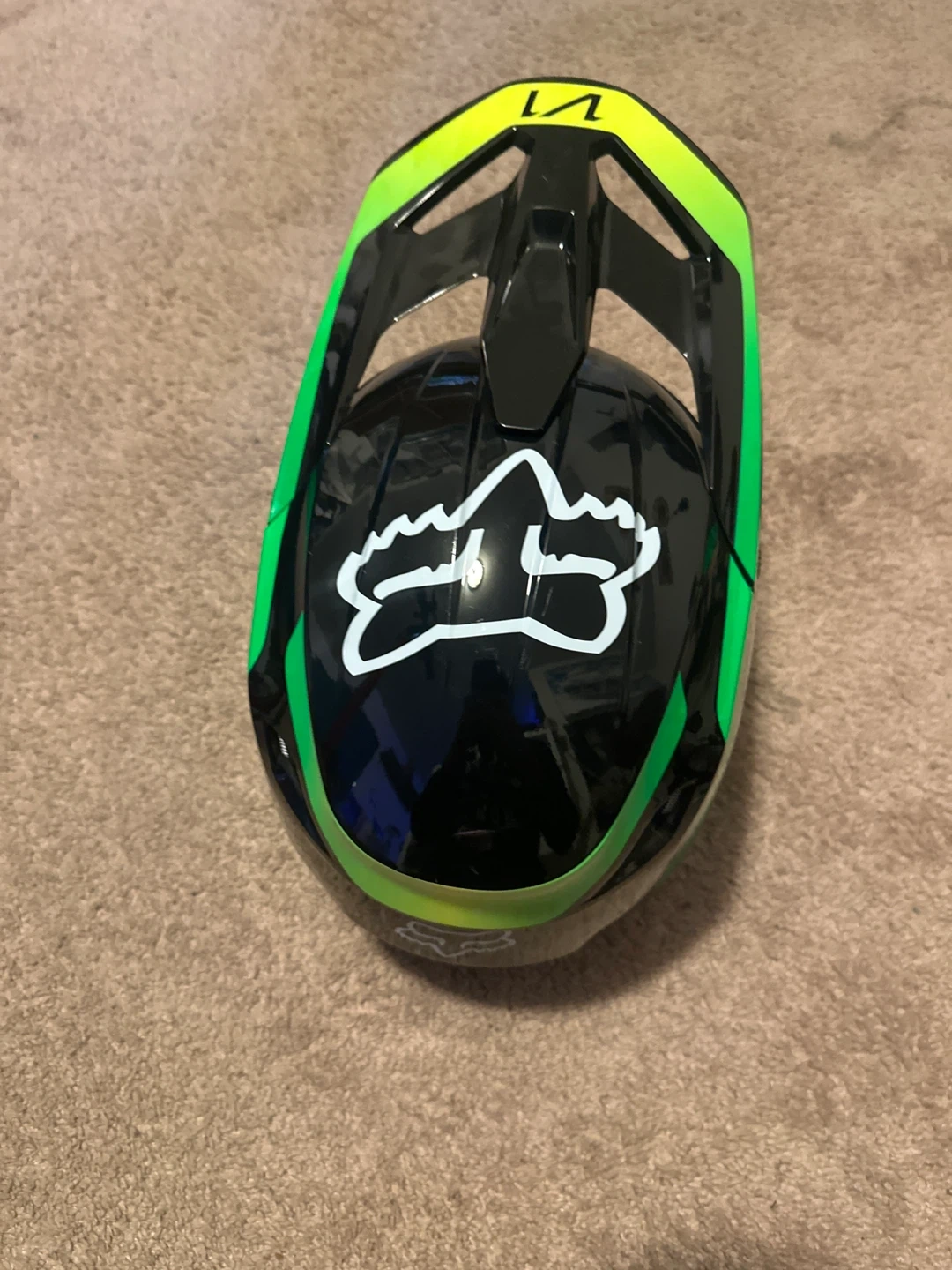 Selling a Fox Racing dirt bike helmet in black and green! It's a size XL and in good condition. Perfect for hitting the trails or the track!