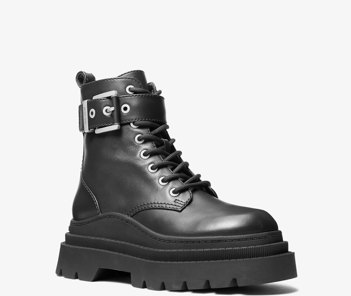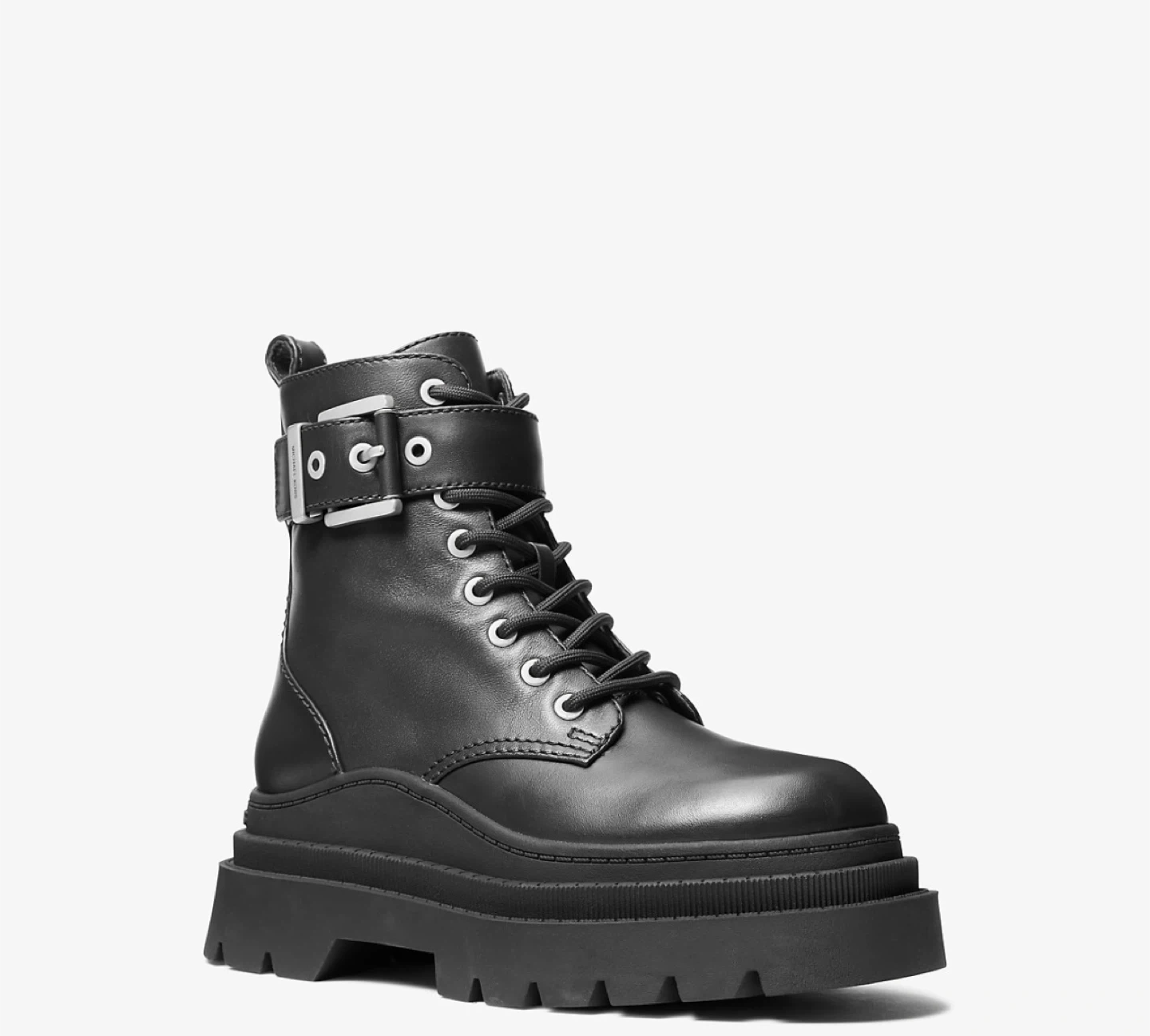 Michael Kors Black Leather Lace-Up Combat Boots