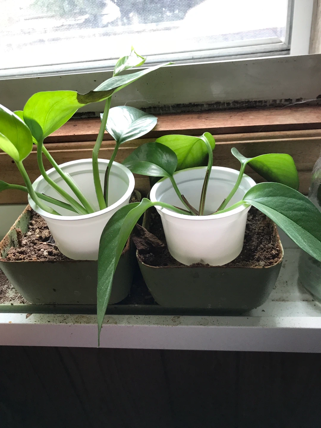 Healthy Pothos plant with lush green leaves. Cuttings from the larger plants in water or plastic pot. This plant thrives in low to medium indirect light. It's a great addition to any home or office space! Cuttings $5-10 medium potted in soil $25-50 in single pots with trailing vines op to 3’ 🪴 Large $100 in triple pots on a base with trailing vines up to 5’
