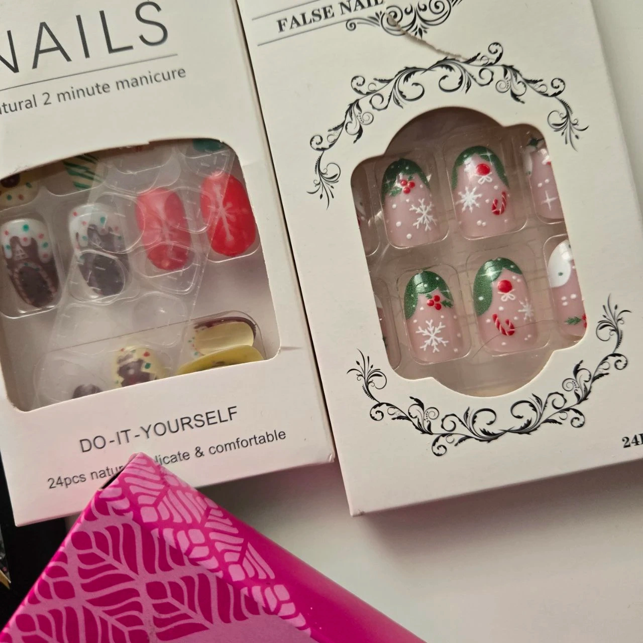 DIY home manicure bundle including gel nail lamp and press-on nails.