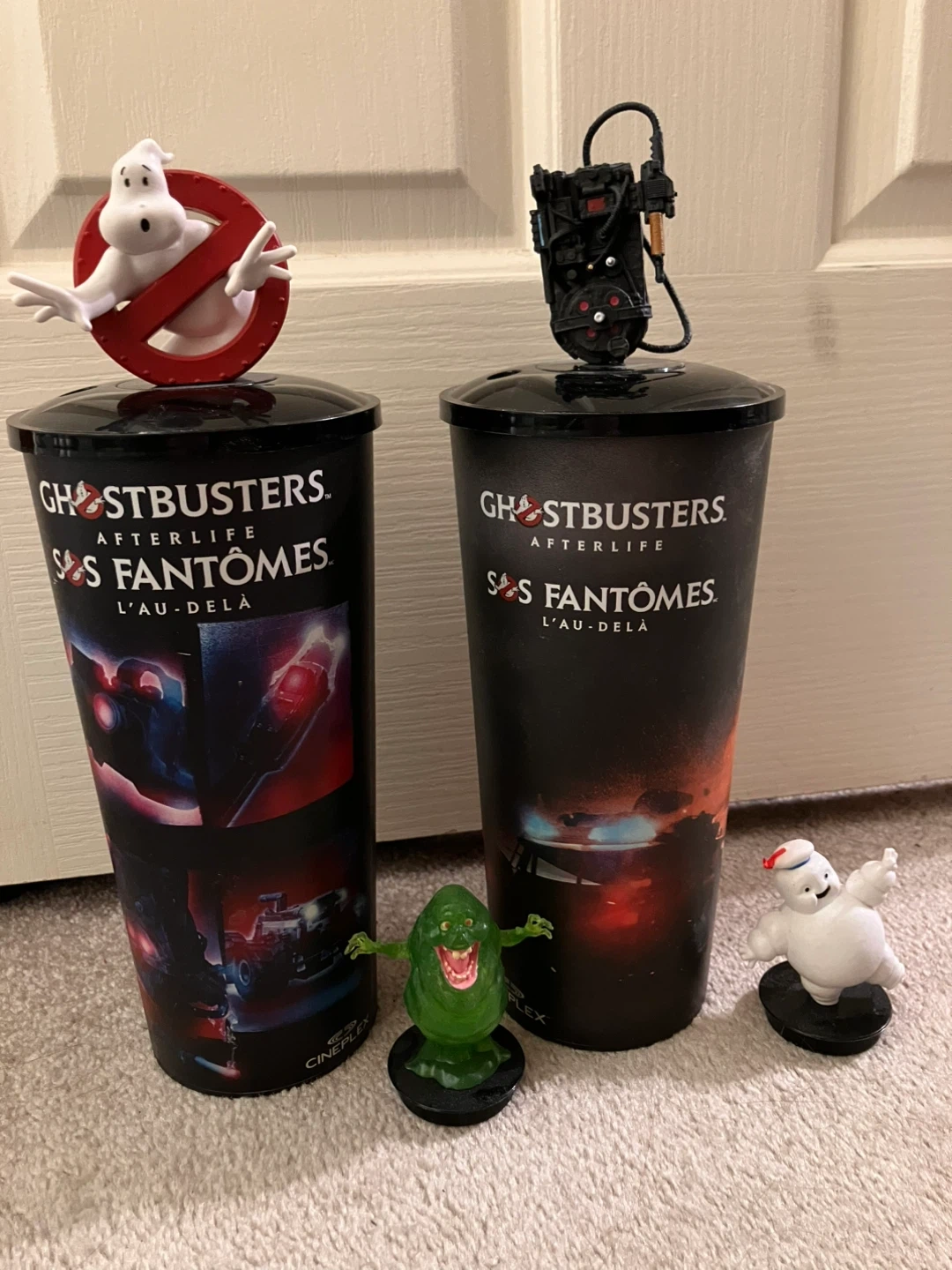 10Two Ghostbusters Afterlife cups from Cineplex! These are great for any Ghostbusters fan. Comes with all four toppers, only missing the straws. Bought at a showing with of the original crew (not signed) Price is for both, message