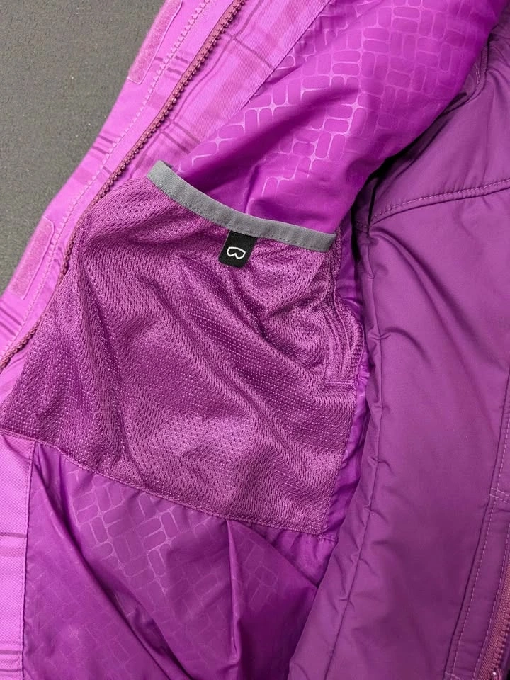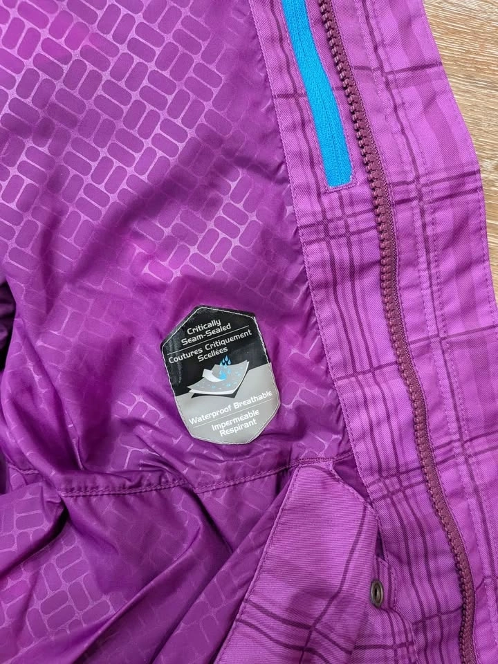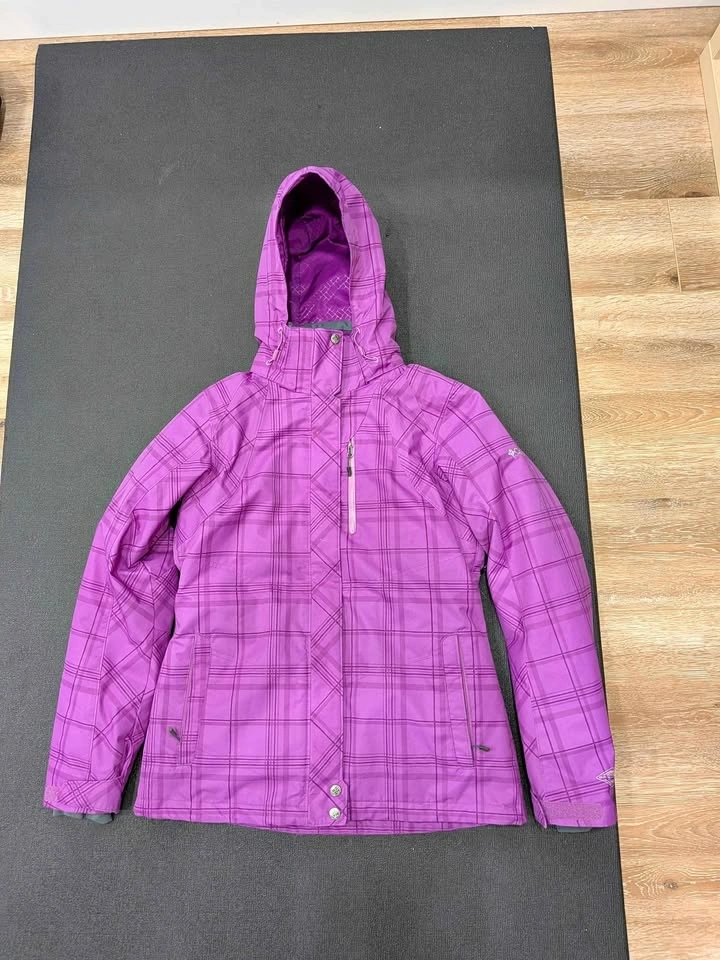 Staying warm never looked so good! This is a Columbia Sportswear Interchange system jacket in a vibrant purple plaid print, size Medium. It features Columbia's Omni-Heat thermal reflective lining and Omni-Shield Advanced Repellency to keep moisture out. This is actually a 2-in-1 system — the inner insulated liner zips out and can be worn separately as a standalone jacket, giving you two jackets in one! Features: Omni-Heat thermal lining, Omni-Shield water repellency, Zip-in Interchange liner (removable inner jacket), Adjustable hood, Multiple zippered pockets, Gray fleece collar lining, Blue accent zipper detail. Great condition — no rips, stains, or broken zippers. Perfect for skiing, hiking, or everyday cold-weather use. No smoking owner. Size: Women's Medium. Color: Purple Plaid. Brand: Columbia Sportswear. Retail price is above $200.