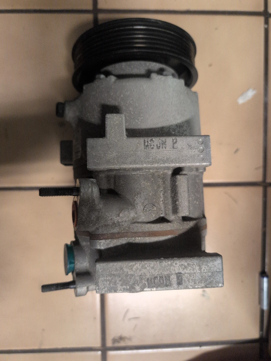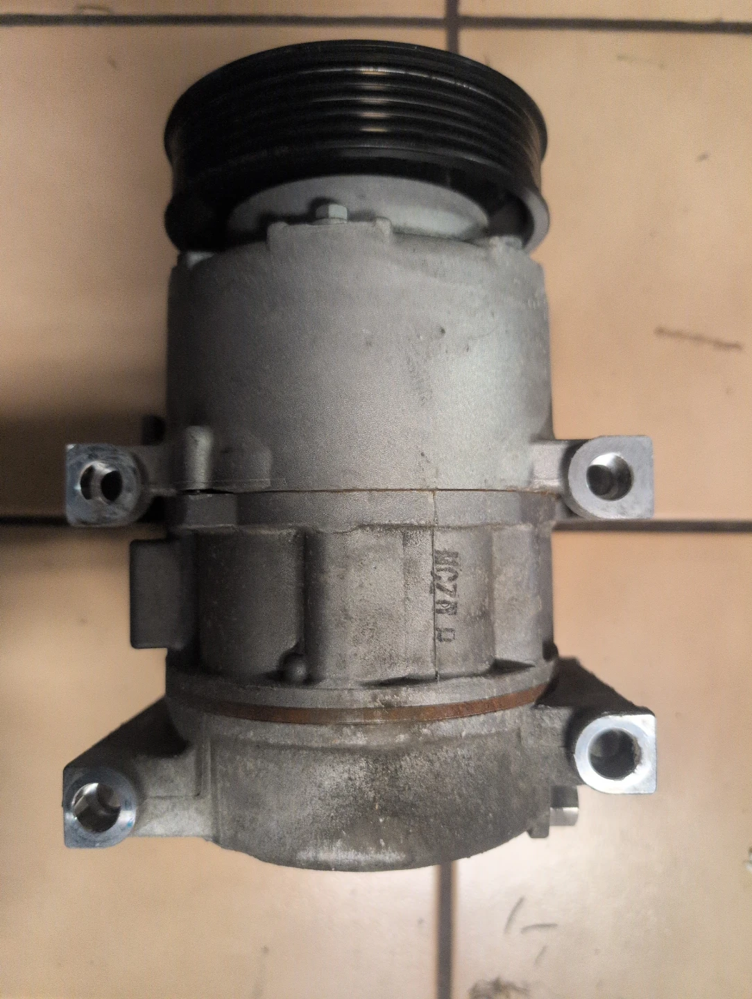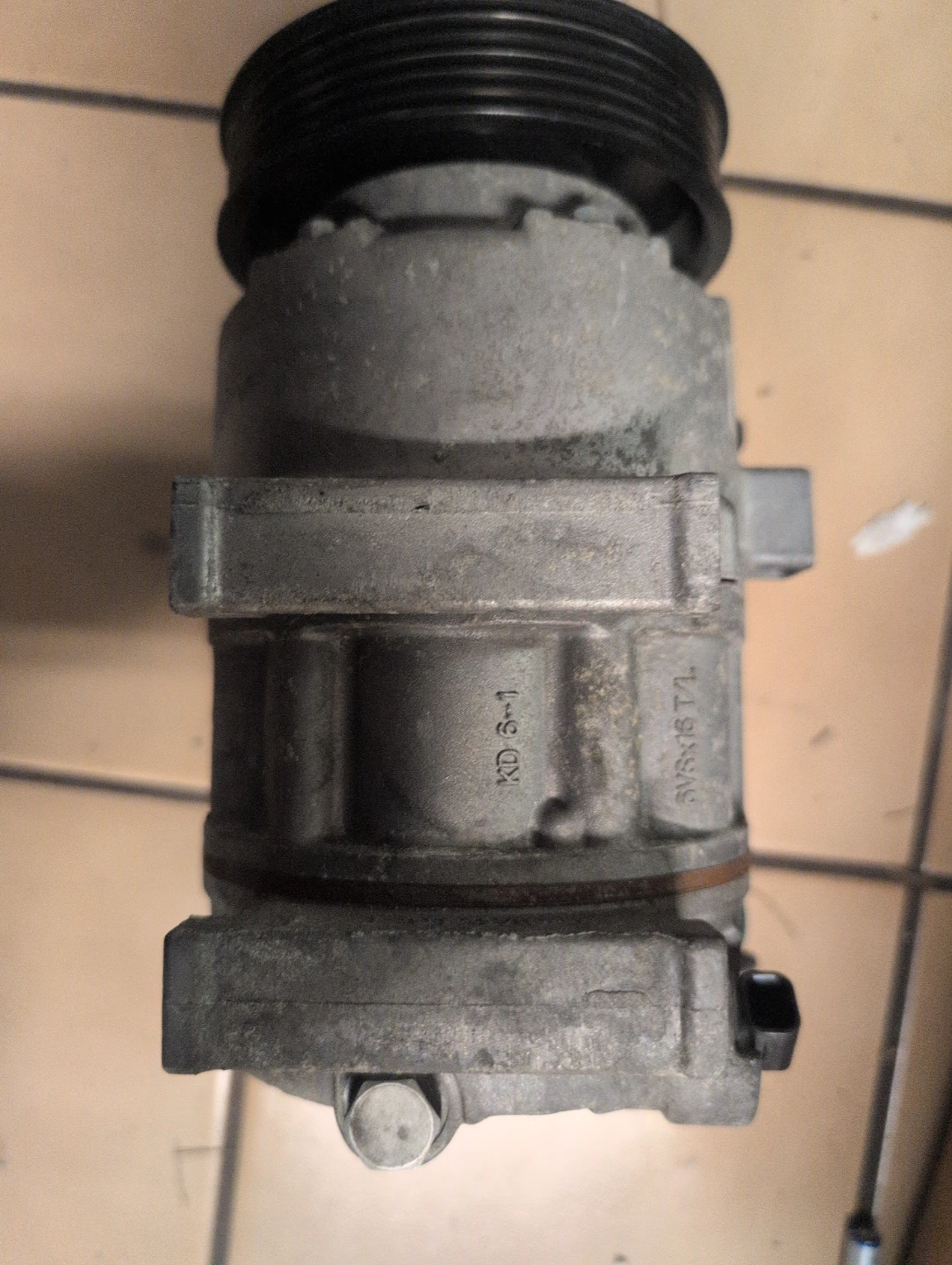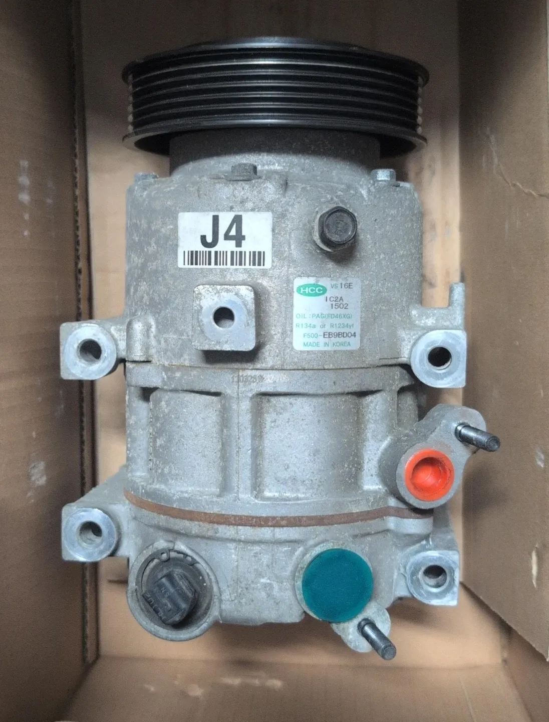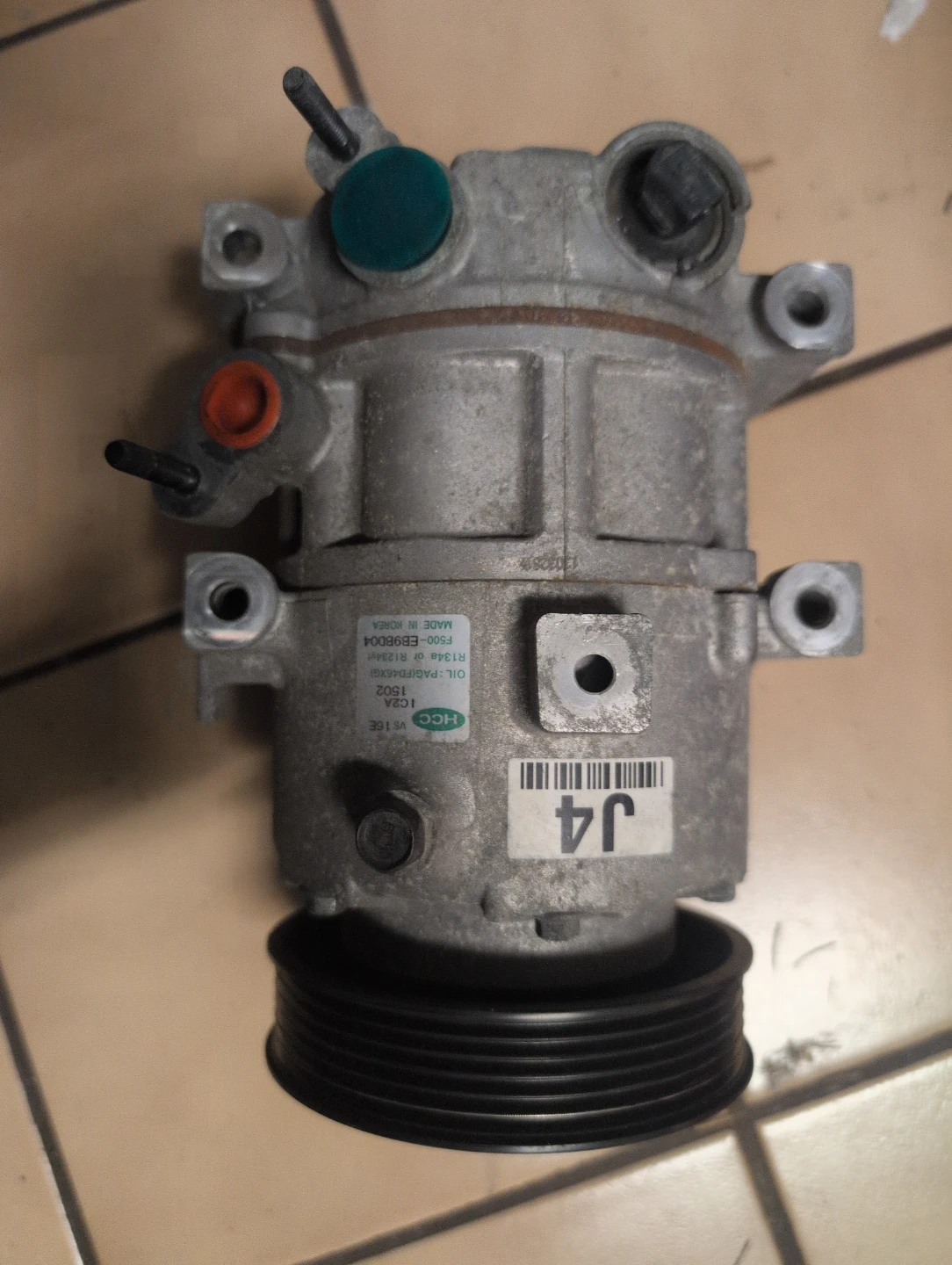 HCC VS 16E AC compressor. It is from 2013 Kia optima 2.4L engine. This unit is designed for vehicles with a need for replacement AC system components. Made in Korea.