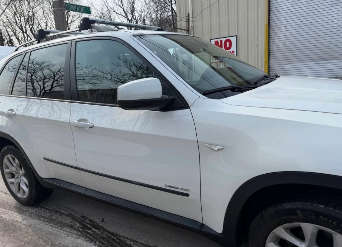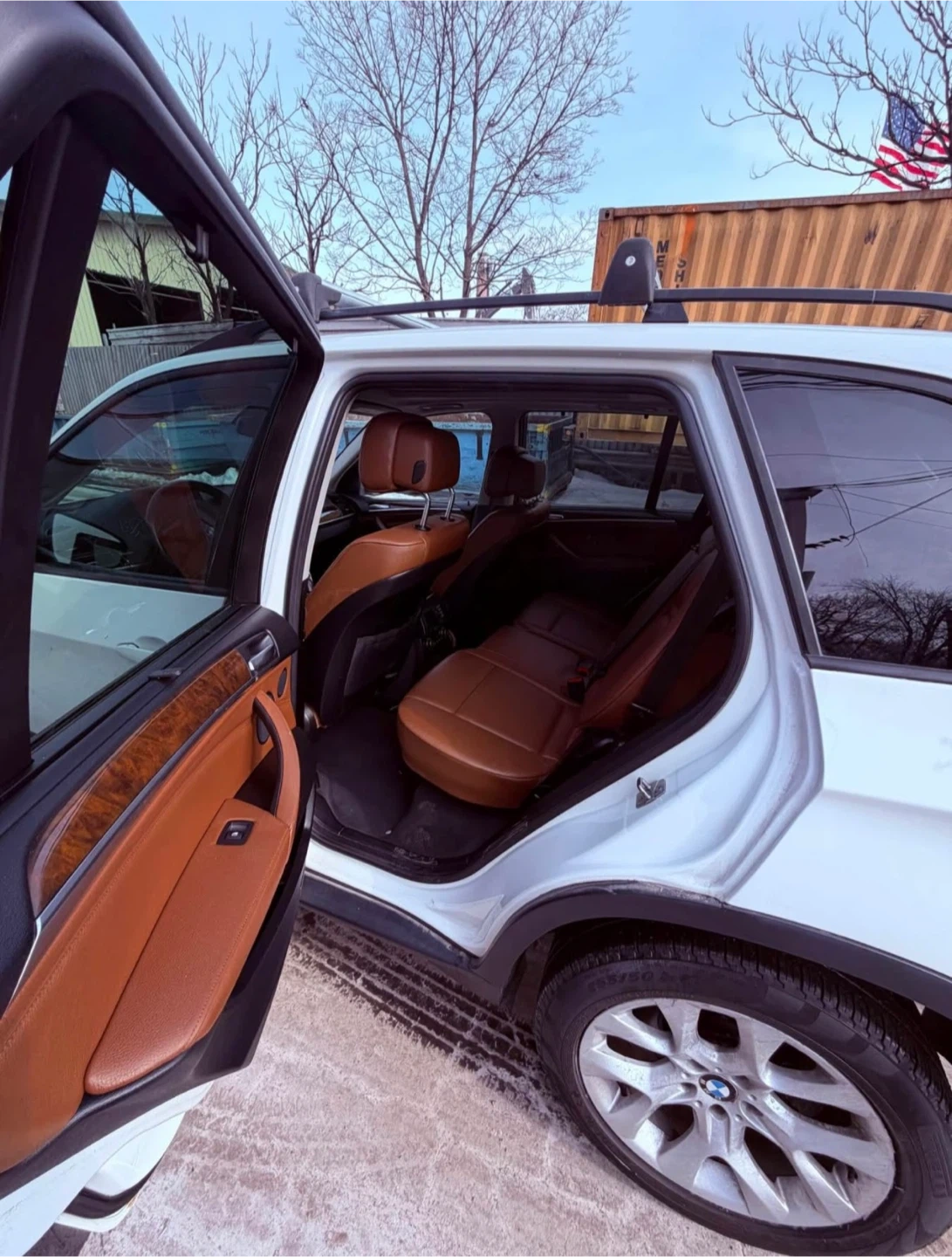 This is a white BMW X5. It's a 5-door SUV with roof racks. Panorama roof,7 seats. Fully loaded. Excellent condition. 92000 miles. Clean title.