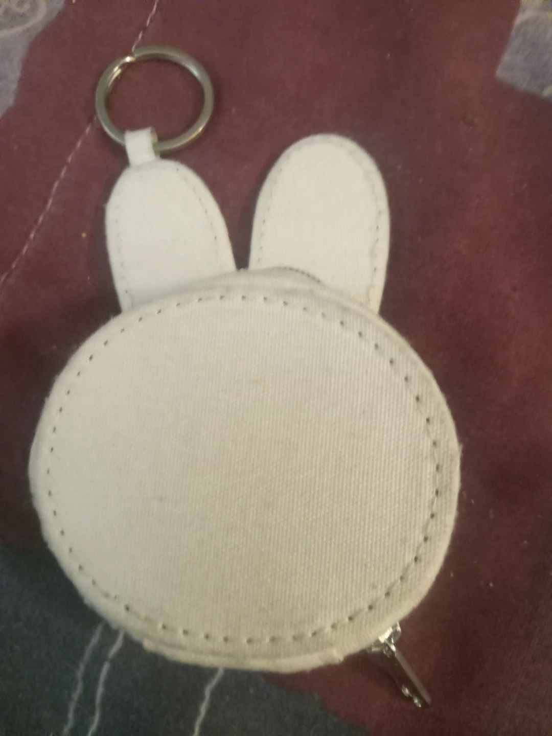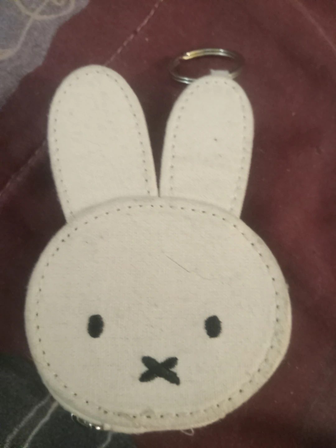 Cute Miffy bunny coin purse with a keychain attachment. It's made of durable canvas material and includes a small zipper closure. Perfect for carrying coins or small essentials!