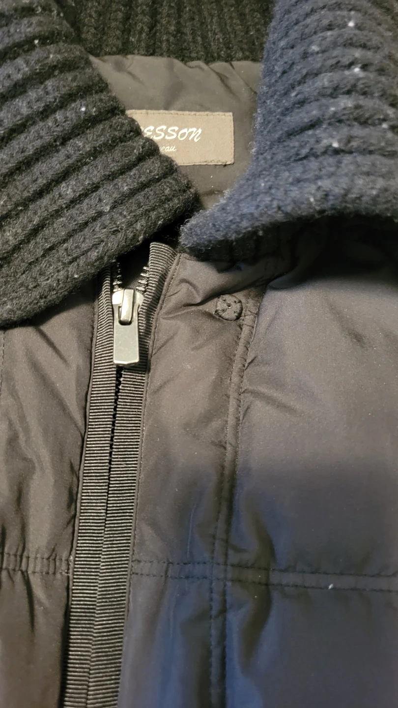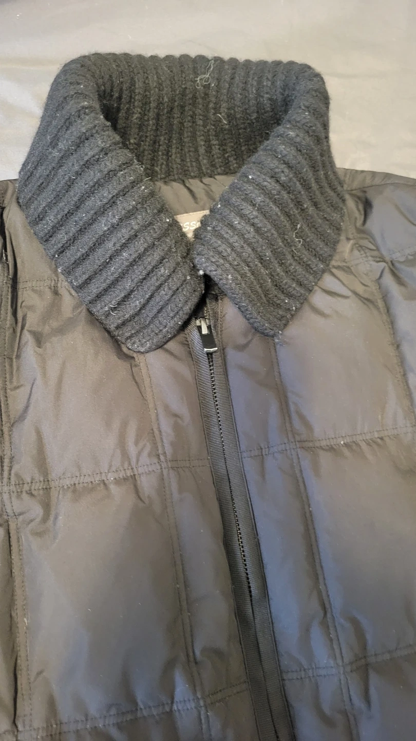 The filling is 80% goose down and 20% goose feather, with other components being 80% wool and 40% nylon. This jacket is great for keeping warm during colder weather!