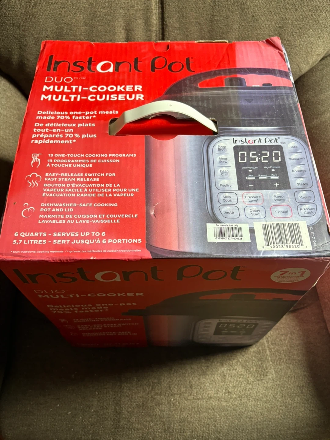 Buy & SellBrand New !! Instant Pot Duo 6-Quart Multi-CookerBrand New !! Instant Pot Duo 6-Quart Multi-Cooker$65Instant Pot Duo 7-in-1 electric pressure cooker. Its never been out of the boxBrandInstant PotWHERE TO MEETCheck LocationView MapSELLERBarryBradford100 reviews0 chats·1 favorites·21 viewsSEND CHAT TO SELLERHi Barry! I’m interested in your listing.Hi Barry! I’m interested in your listing.Get the Karrot app to chatSign In to chat