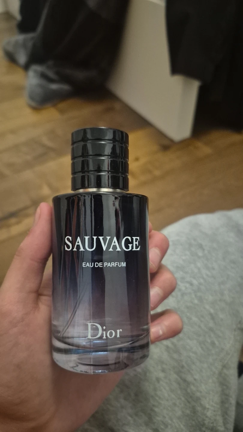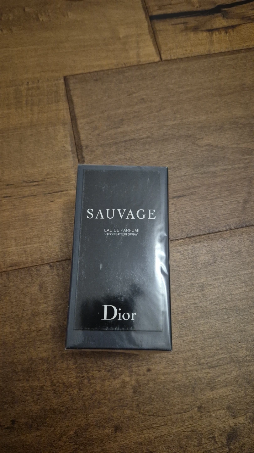 This is a 100ml bottle of Dior Sauvage Eau de Parfum. It comes with its original box. It's a popular scent for men.