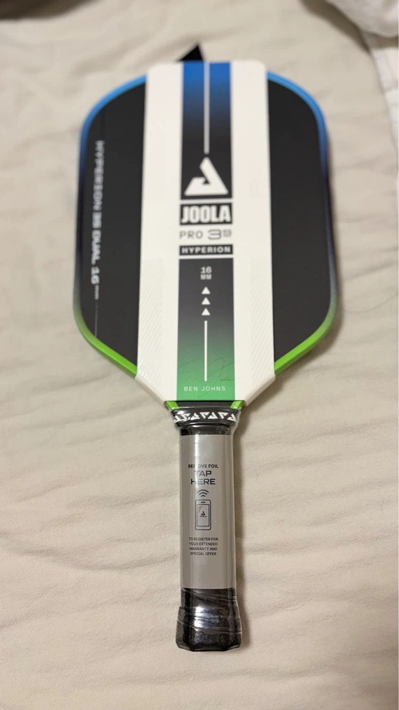 JOOLA Hyperion 35 Dual pickleball paddle endorsed by Ben Johns. It's 16mm thick. Registration for an extended warranty and special offer is available.