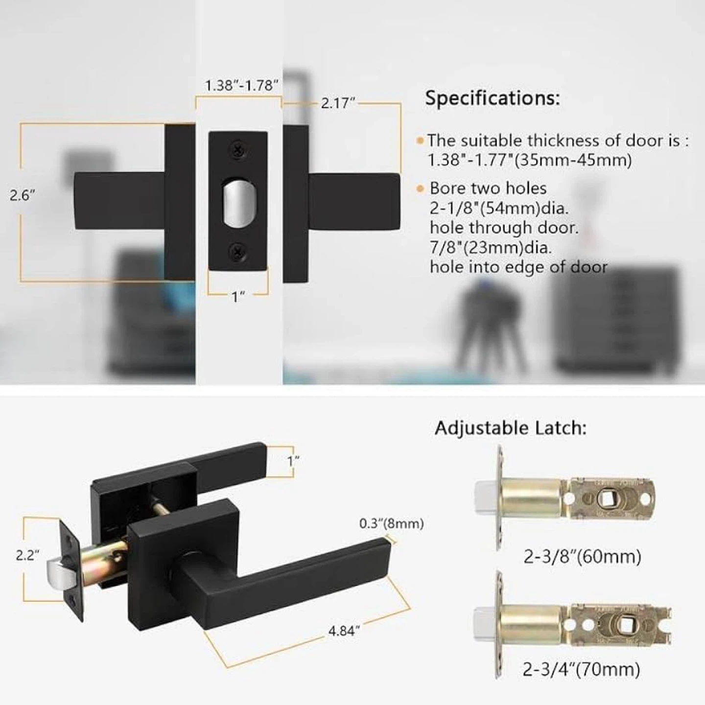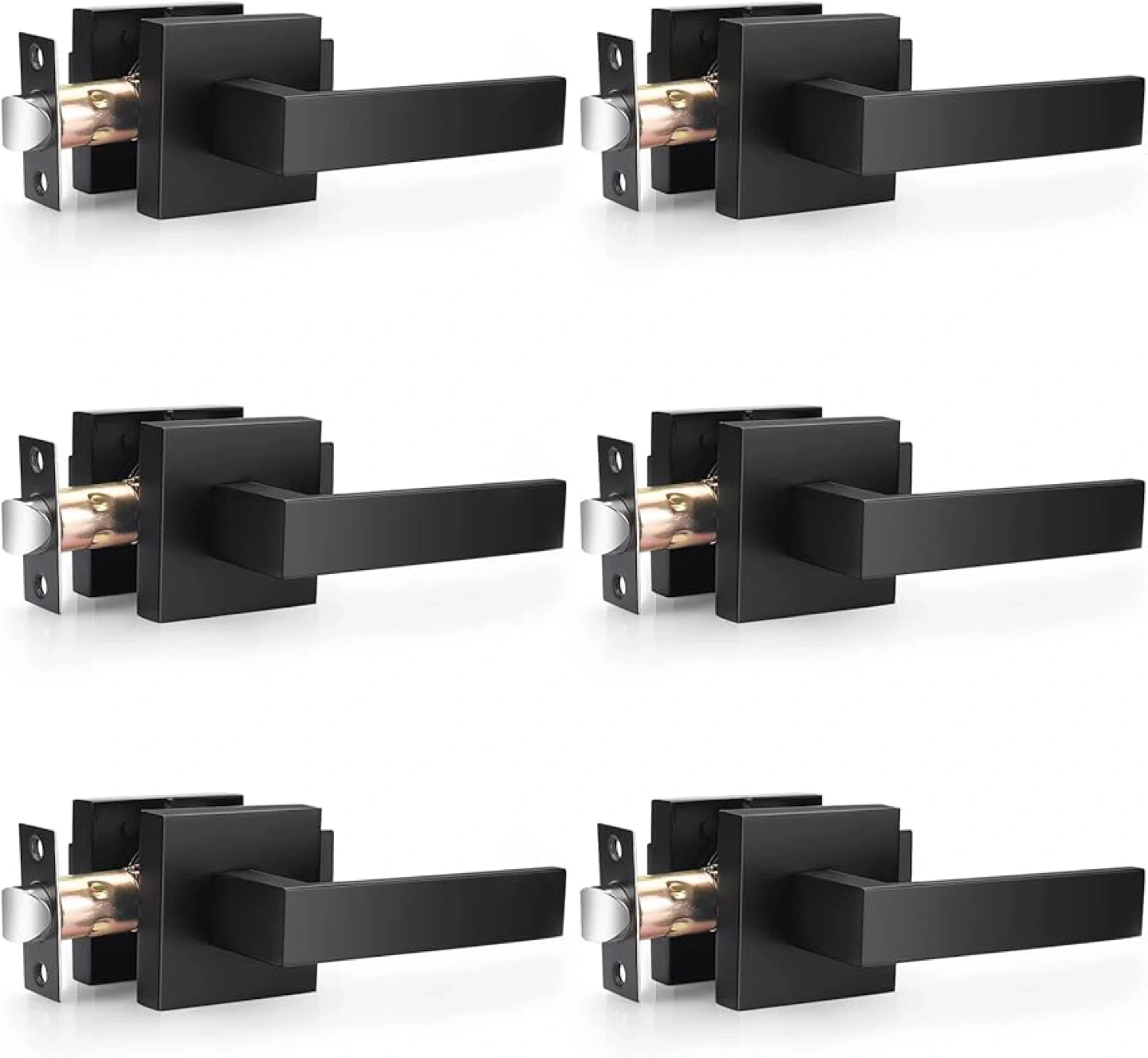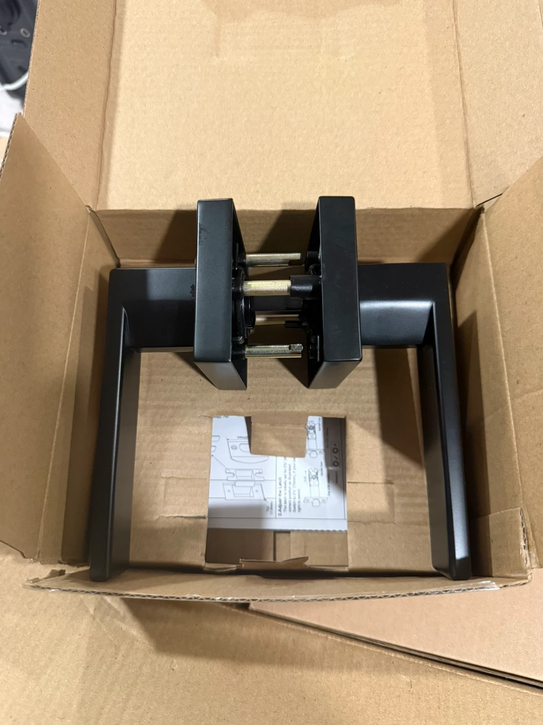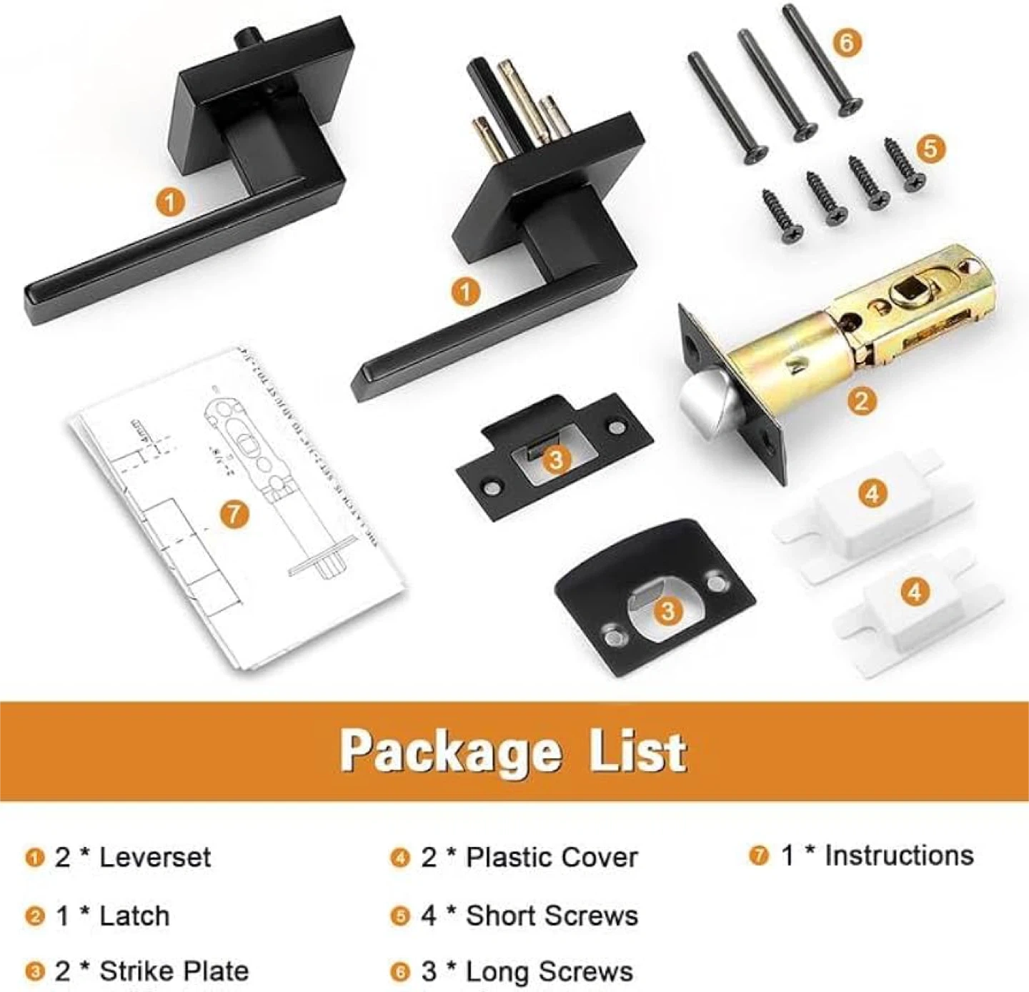 Selling a brand new set of 6 Probrico matte black door lever handle set! This set comes with everything you need for installation, including the leverset, latch, strike plate, plastic covers, short screws, long screws, and instructions. The suitable thickness of the door is 1.38"-1.77" (35mm-45mm). Perfect for upgrading your home's interior doors!