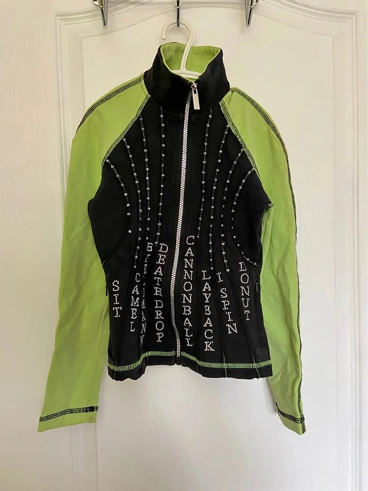 Black and green bedazzled figure skating sweater/jacket