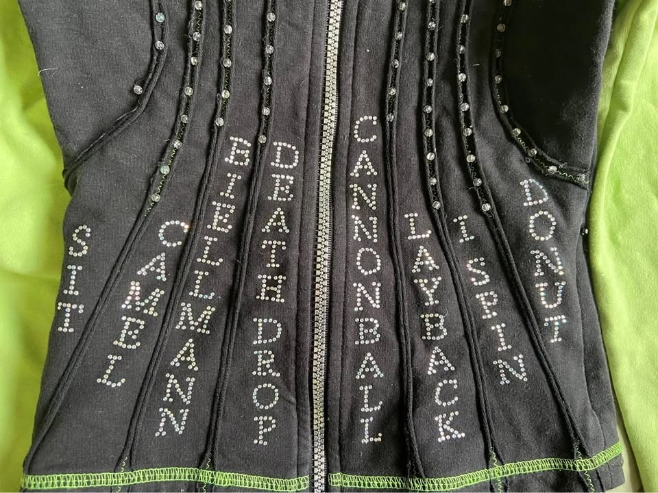 Black and green bedazzled figure skating sweater/jacket
