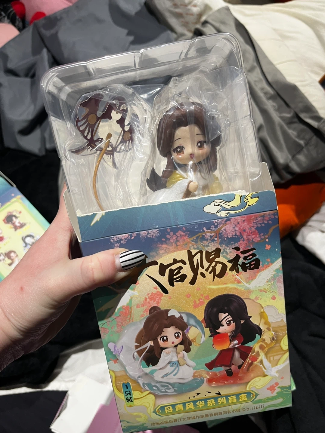 Blind Box Figure of Xie Lian from TGCF looking sassy (exxxtra cute)! Opened just to see who was in the box. Has not been unwrapped. Bought for $27.99 at Mr. Surprise the Well. Asking $20.