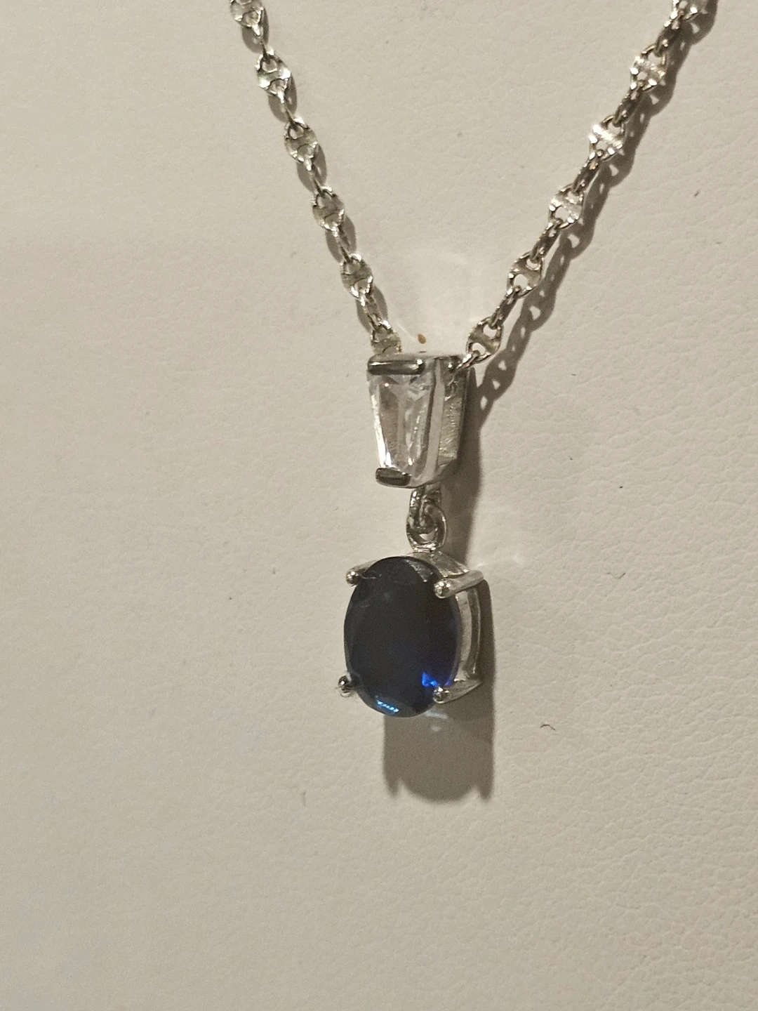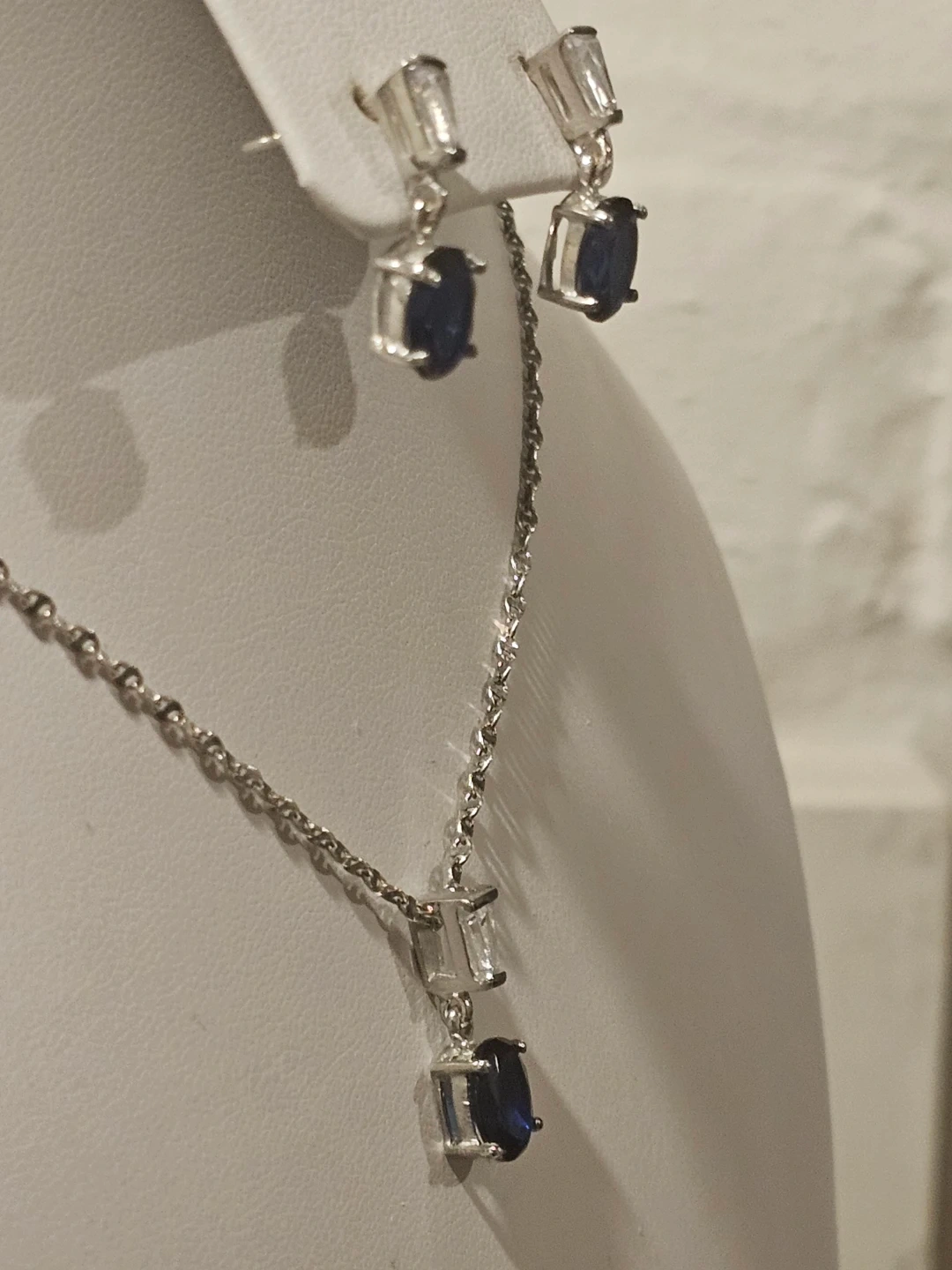 925 Sterling Silver Necklace and Earring Set with Blue Stone