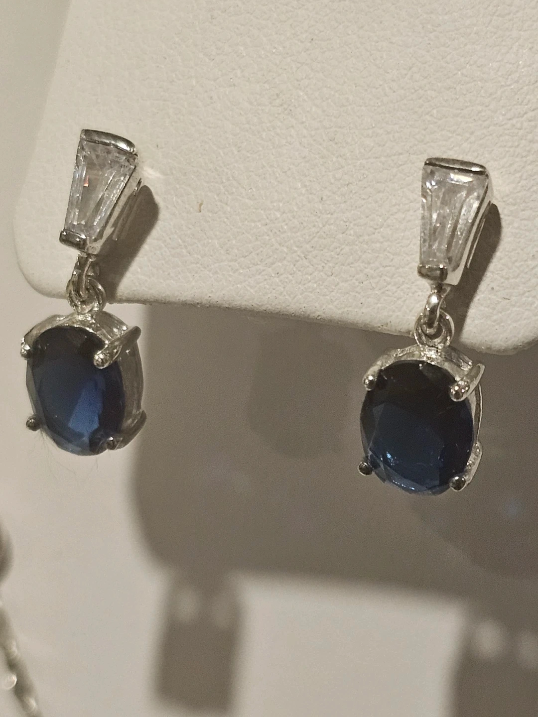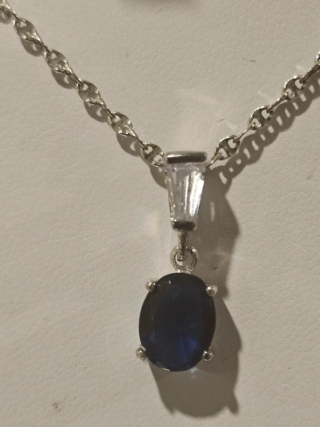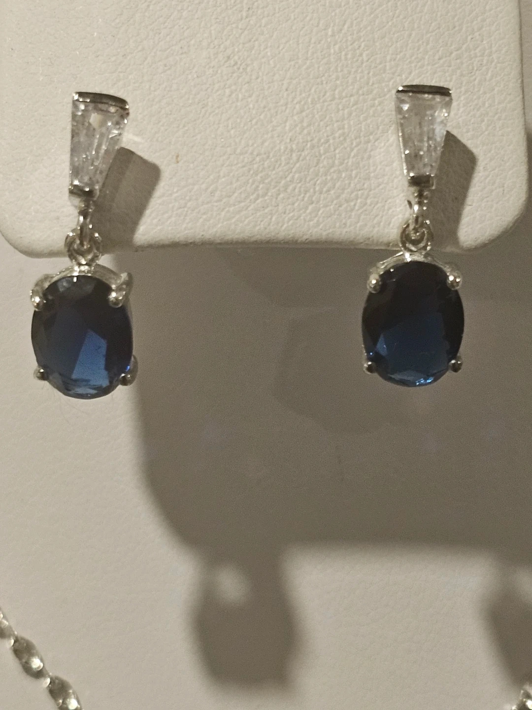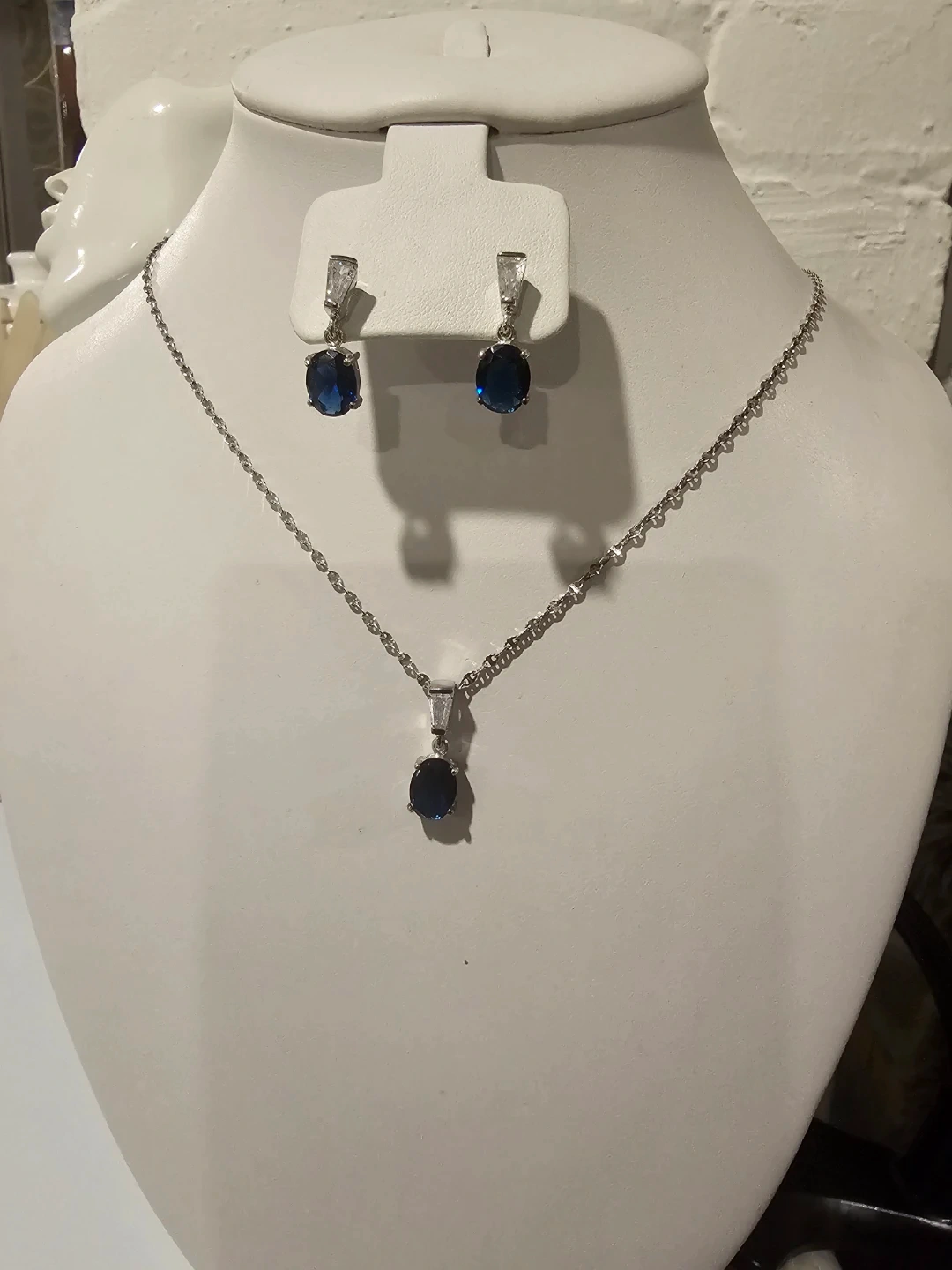 925 Sterling Silver Necklace and Earring Set with Blue Stone