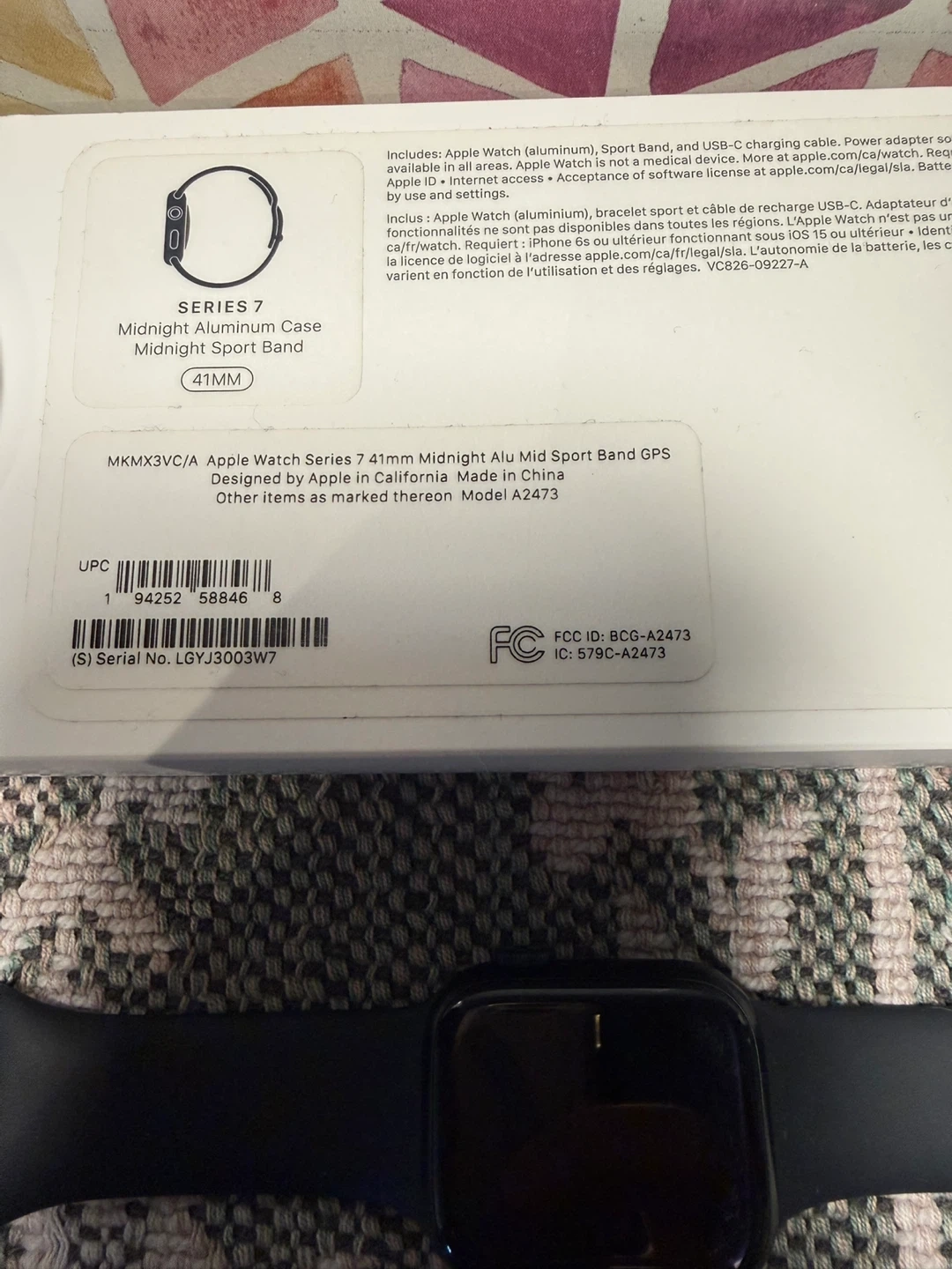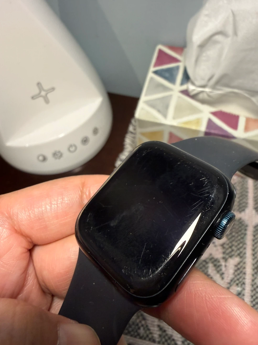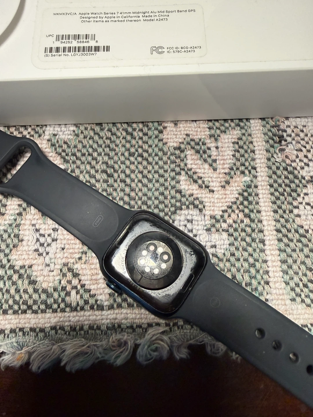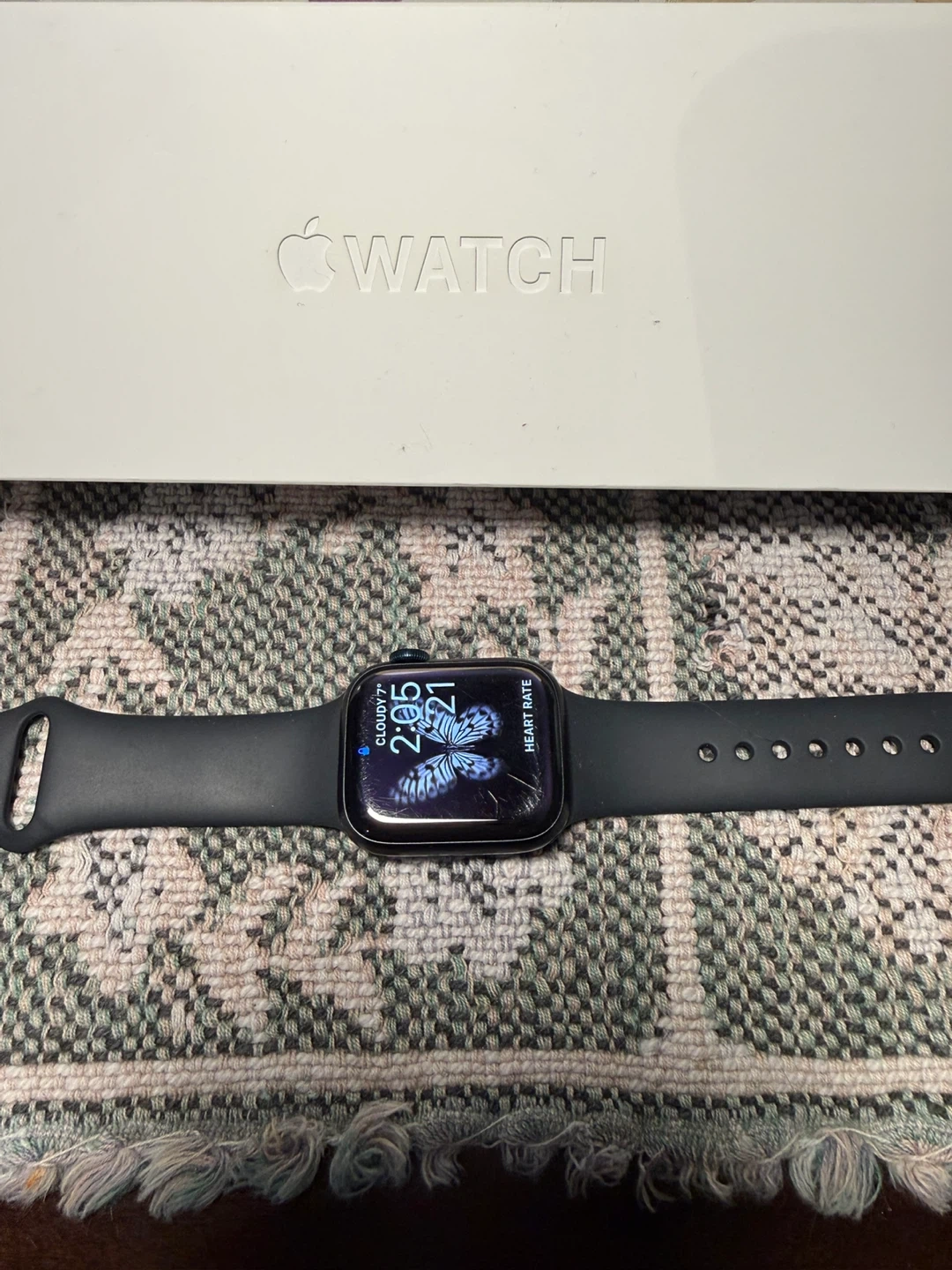 Selling an Apple Watch Series 7, 41mm in the Midnight colour. It comes with the original box. There are some scratches on the screen, as shown in the pictures.