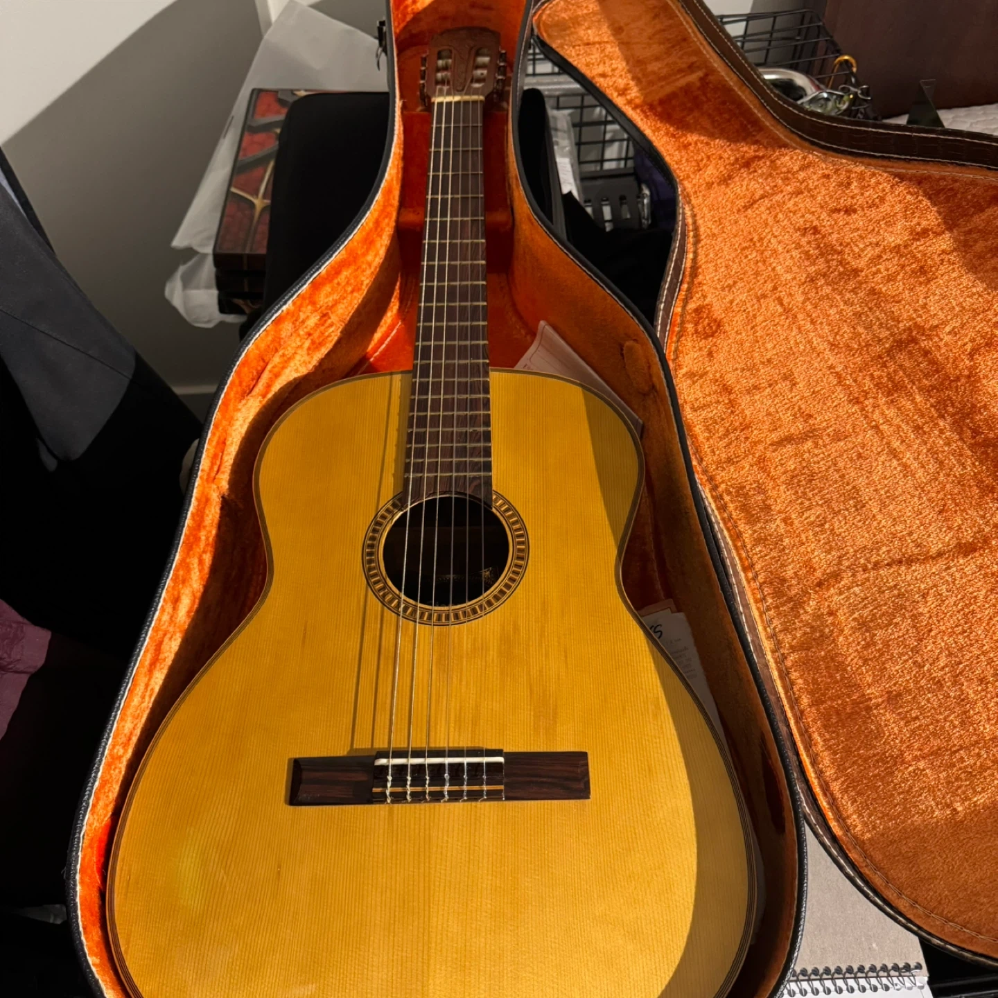 Selling a Giannini classical guitar. It's in good condition and comes with a case. The guitar has a warm sound and is perfect for beginners or experienced players alike. It's ready to be played!