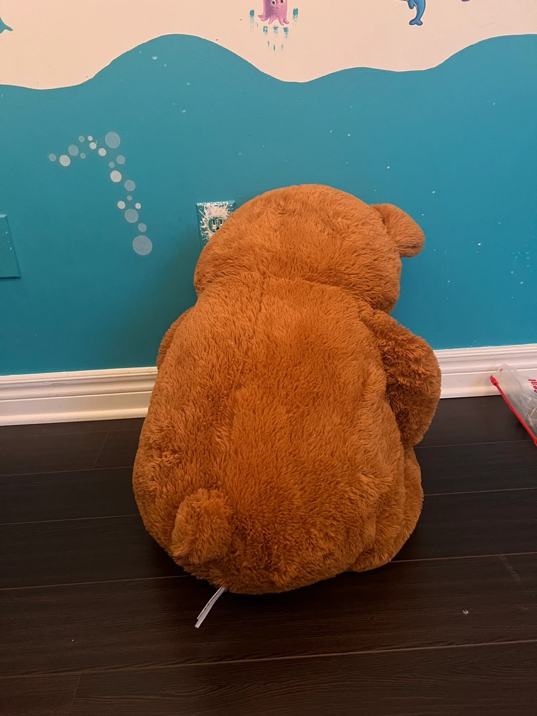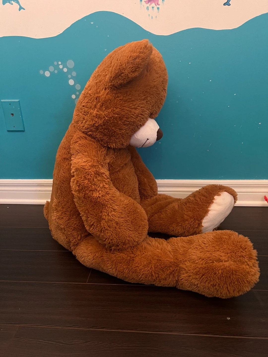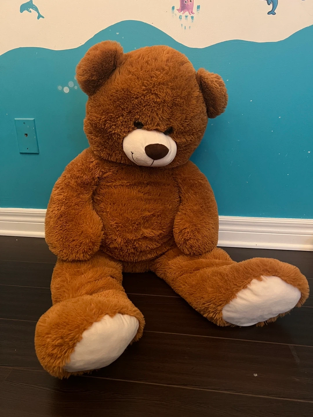 Selling a big, cuddly brown teddy bear! It's in great condition and ready for a new home. This bear is super soft and perfect for snuggling. It's a great size for kids or anyone who loves a giant teddy bear!