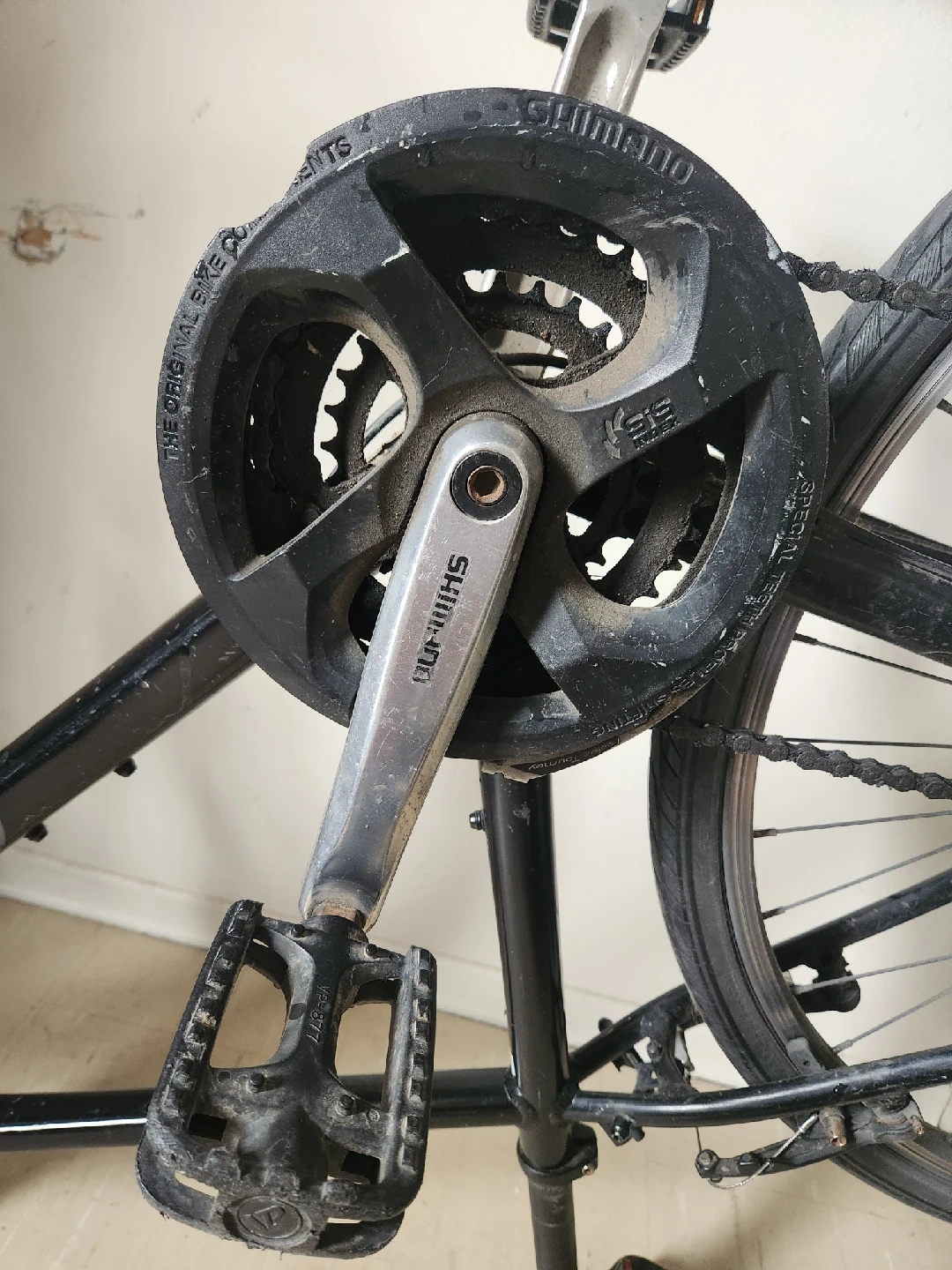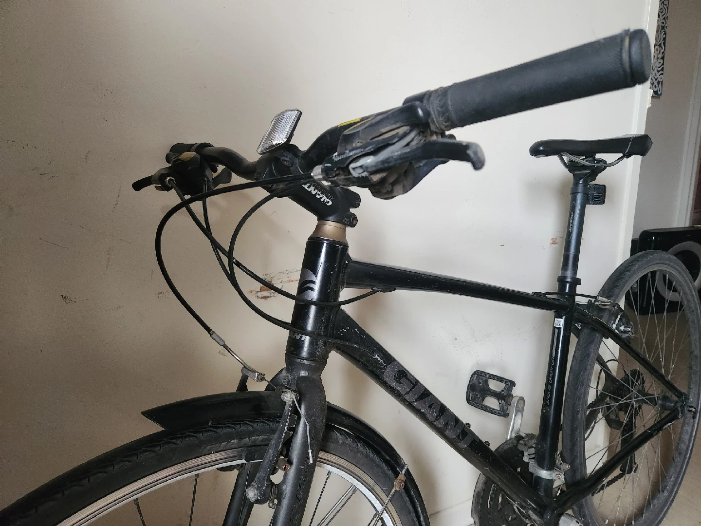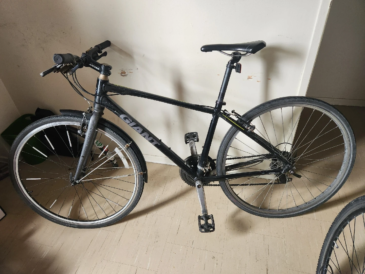 2010-year-old Giant Escape (Small), recently had a fall — rear V‑brake is stuck, one pad rubbing the wheel. Currently unrideable without brake repair. What works: Gears shift normally Frame intact Wheels, tires, seat, handlebars usable Cosmetic / minor damage: Heavy scratches all over (cosmetic) Cracks on chain guard Crack on brake lever housing (lever works fine, but a bit exposed) Ideal for: DIY fixer / project bike Parts / salvage Someone willing to repair brake for a casual commuter ride Price: $80 OBO. Pickup in Greektown. First come, first serve.
