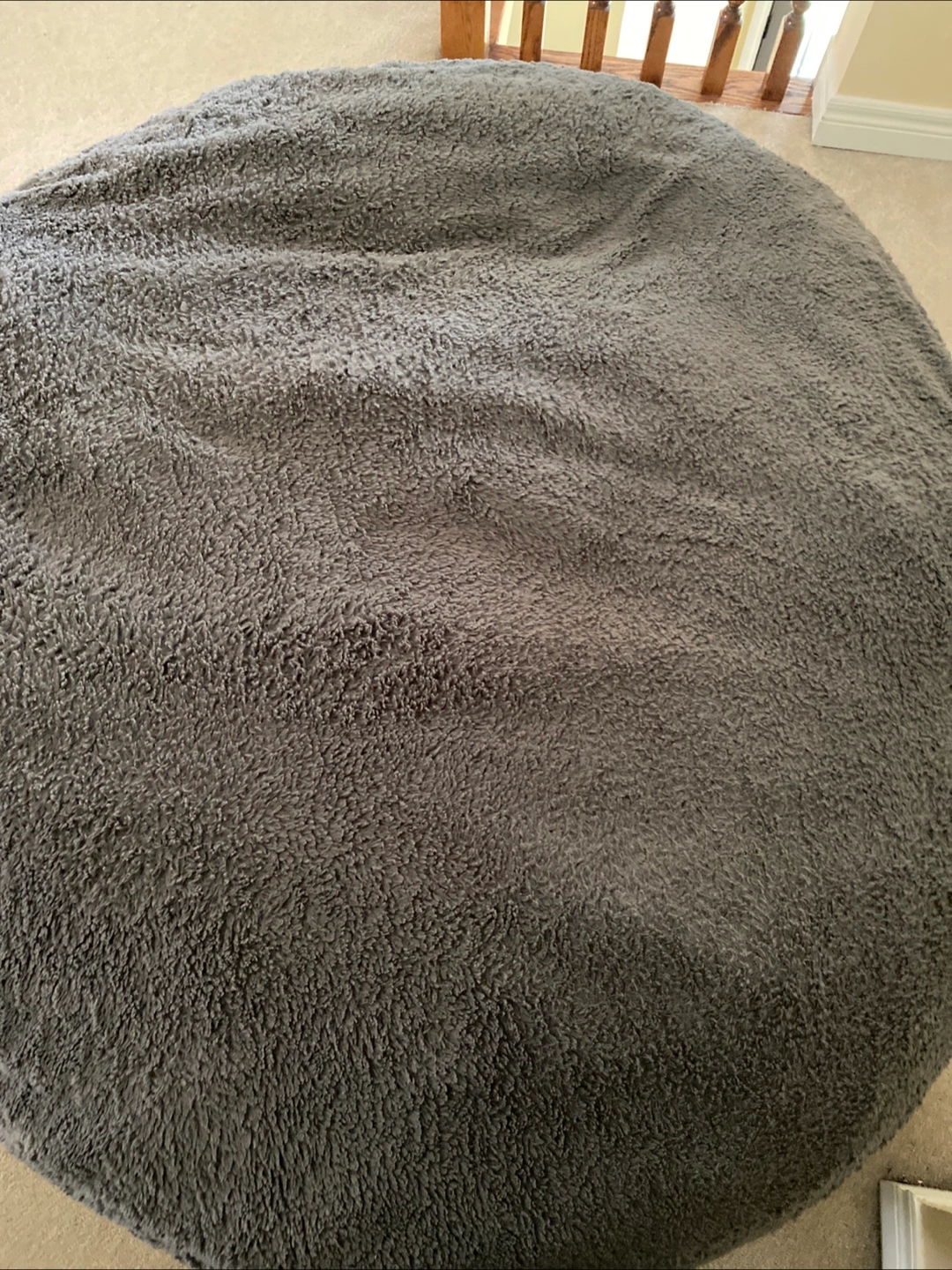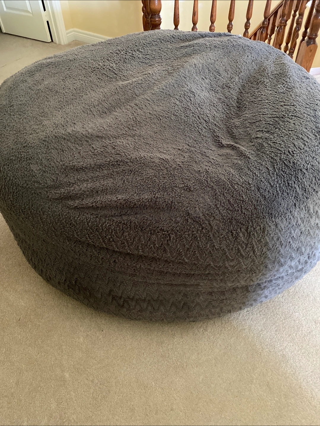 110Oversized fluffy beanbag. Grey in colour. Super comfy! This beanbag can be perfect for lounging or relaxing after a long day. Great condition. Fits 2 people comfortably.