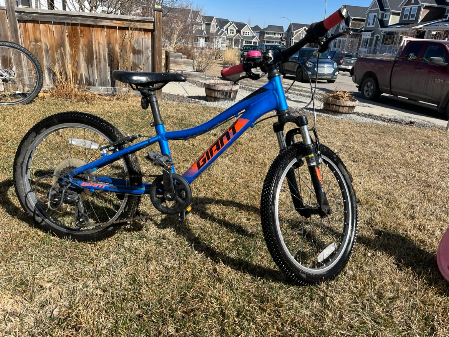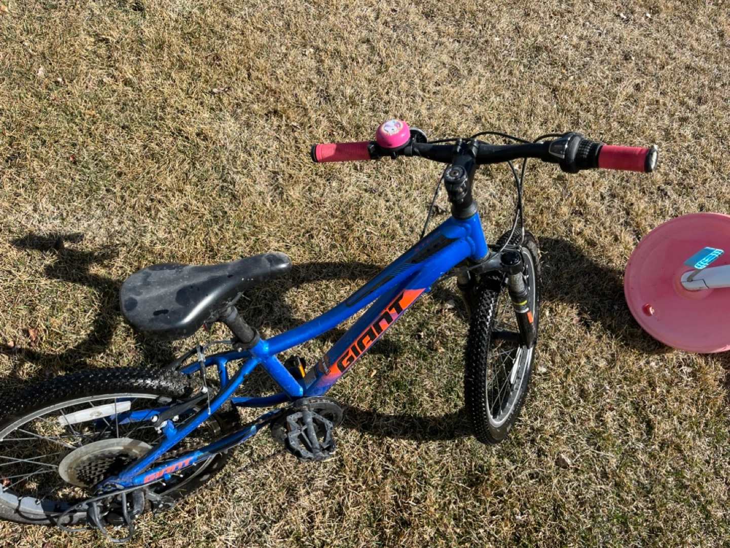 Used kids bike, blue and orange. 20 inch wheels. Shows some wear from use. Great for kids, pink bell and handle grips added. Pick up in Cochrane.