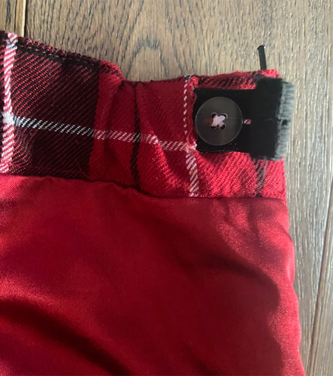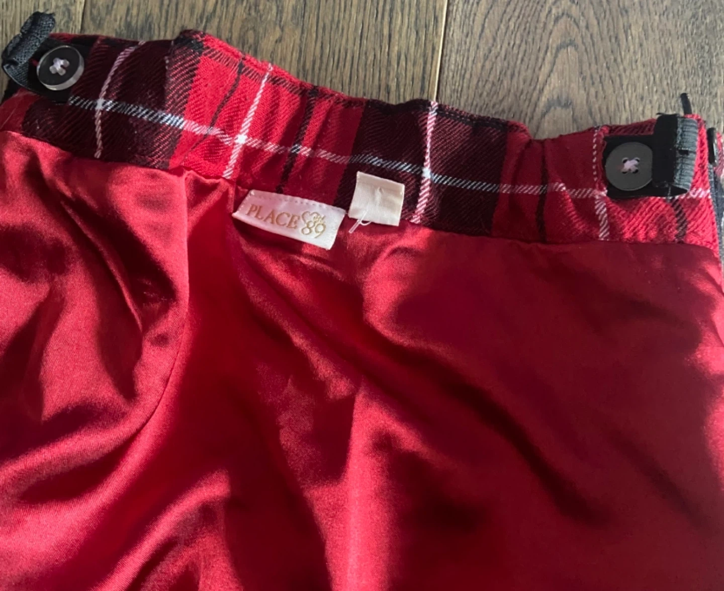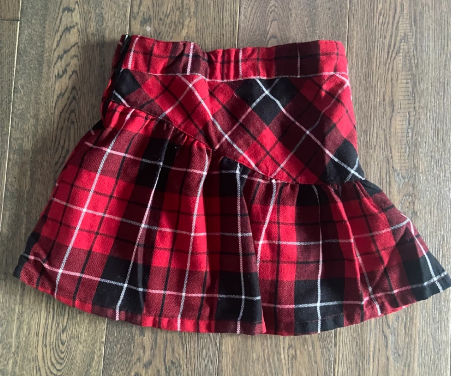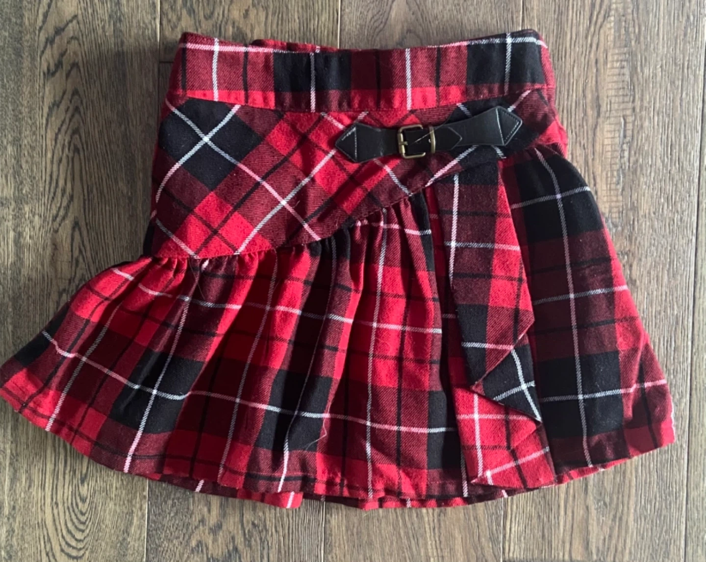 Here's a cute red plaid skirt from The Children's Place! It's a size 5 and features a stylish belt detail. Perfect for adding a pop of colour to any outfit this holiday season! Adjustable elasticated waistband with button fixture, both sides. Side zipper. EUC and smk-free. Pick up near Linwell/Vine