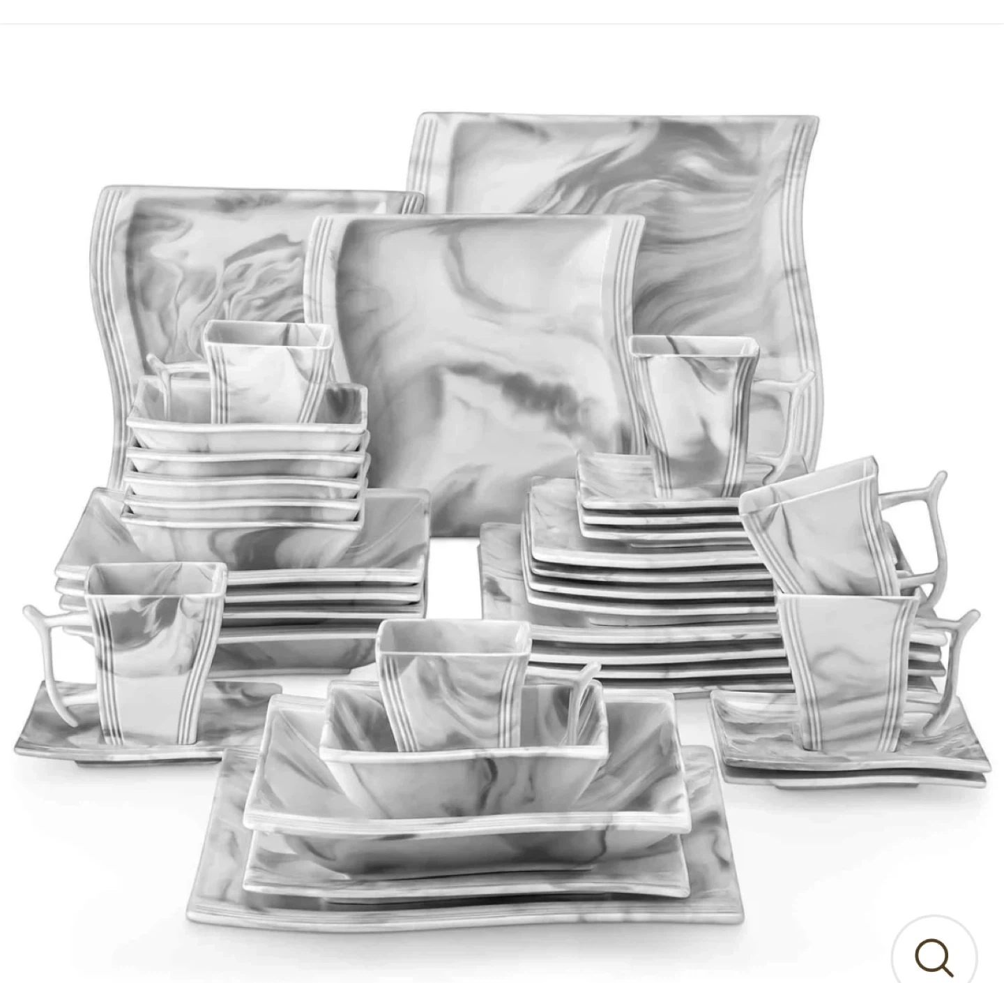 99Looking to add a touch of elegance to your dining table? This Gibson Home Plaza Cafe dinnerware set is perfect! The set includes plates, bowls, , and saucers, all with a stylish marble design. It's a great way to impress your guests or simply enjoy a nice meal at home NO CUPS :(